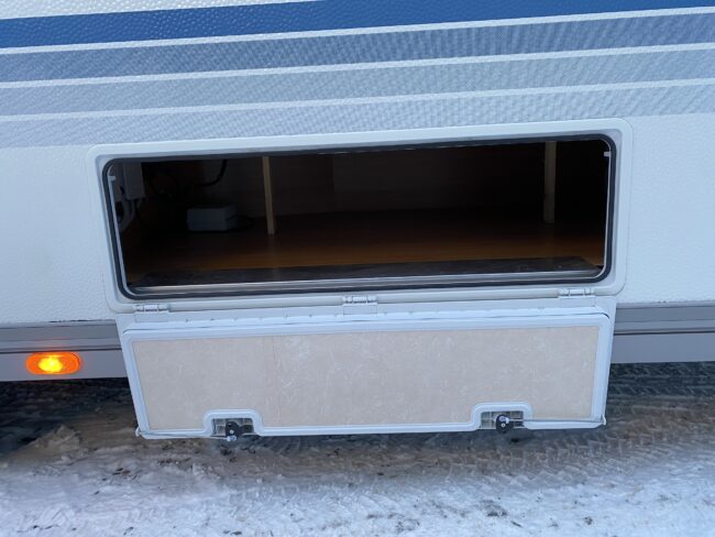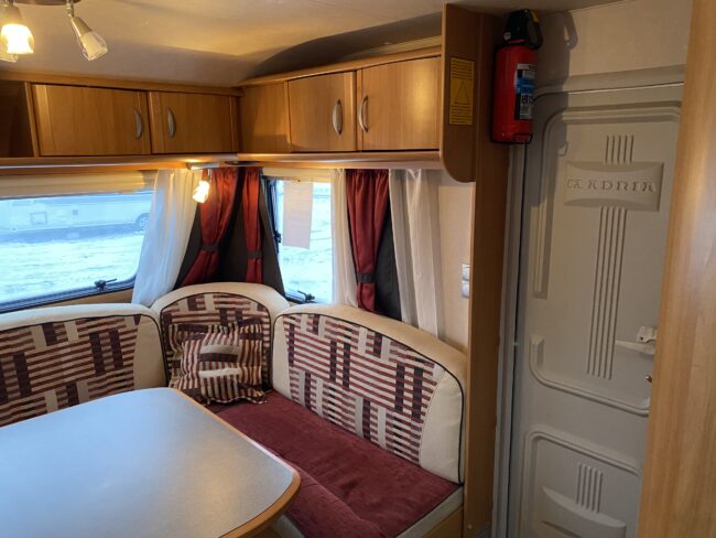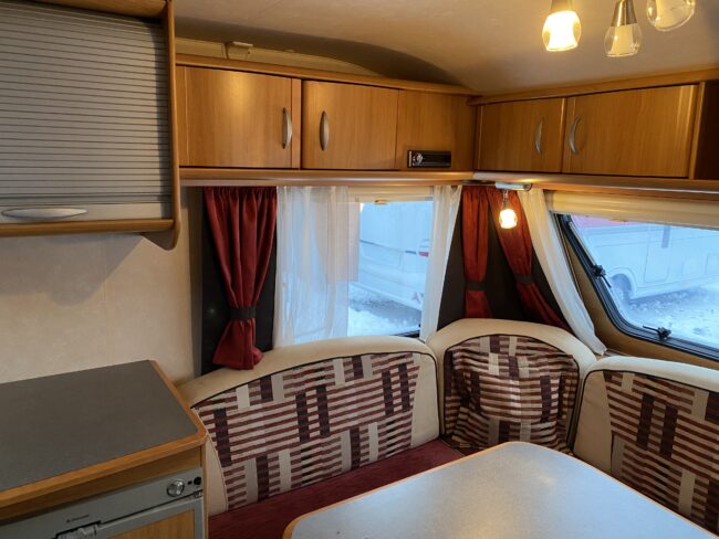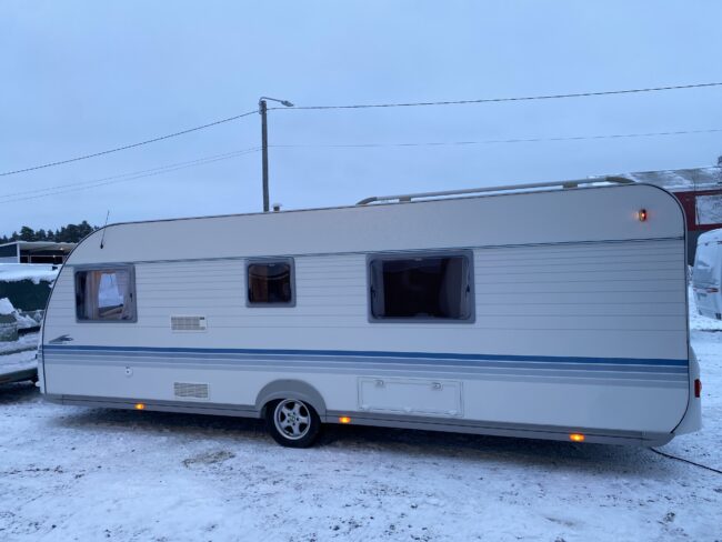 Alde-nestekeskuslämmitys, sähköpatruuna, lattialämmitys sähköllä, lämmin vesi, bidesuihku, jääkaappi, mikro-uuni, liesituuletin, kasettiverhot, kasetti wc, tv-antenni, cd/radio, akku-/laturivarustus, kitkavetopää, tavaraluukku, yläkaappivuode, kaasupullo, ym... Alde vattenburen-centralvärme, elvärme, el golvvärme, varmvatten, bide-dusch, kylskåp, mikro-ugn, spisfläkt,  kasettrullgardin, kasett-wc, tv-antenn, cd/radio, batteri/laddare, lastlucka, säkerhetskoppling, överskåpbädd, gasflaska, mm... Kosteutta ainakin takanurkassa ja etuosassa!! Oma-/Kokonaispaino 1450kg/1700kg. Egen-/Totalvikt. Korileveys/Karossbredd 248cm. Katsastus voimassa 31.12.2026 asti!