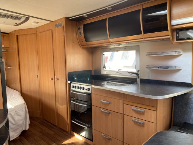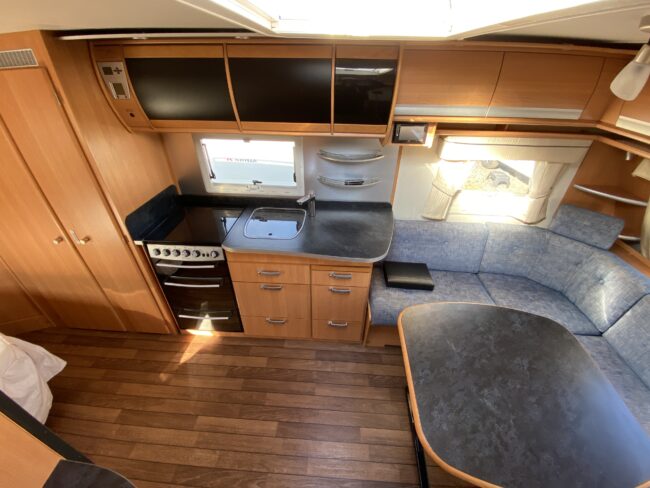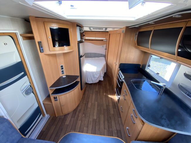 Truma Aventa ilmastointi, ATC-ajonvakautusjärjestelmä, Alde-nestekeskuslämmitys, nestekiertoinen lattialämmitys (shunttaus), sähköpatruuna, lämmin vesi, liesi/uuni/grilli yhdistelmä, mikro, iso jääkaappi/pakastin, liesituuletin, kiinteä raikasvesisäiliö, kiinteä harmaavesisäiliö, kasetti-wc, kasettiverhot, Heki 2 iso kirkas kattoluukku, multimediasoitin, akku-/laturivarustus, aurinkopaneeli, pyyhekuivain, sähkömittari, telttapalvelu, tv-antenni, poistopuhallin Alde kaapissa, tavaraluukku, suksiluukku, kitkavetopää, kattokaiteet, hyönteisovi, alu-vanteet, kaasupullo...