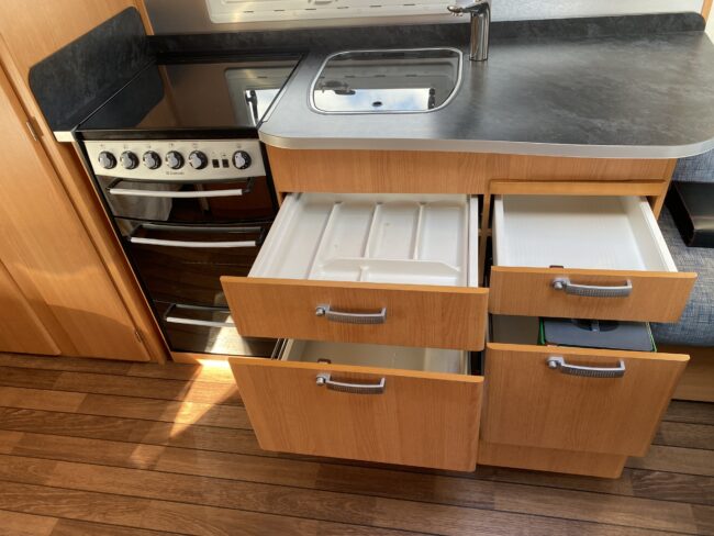 Truma Aventa luftkonditionering, ATC-antisladdsystem, Alde vattenburen-centralvärme, elvärme, Alde-golvvärme shunttad, varmvatten, stor kyl-/frysskåp, spis/ugn/grill, mikro, spisfläkt, fast vattentank, fast gråvattentank, kasettrullgardin, Heki 2 takfönster, kasett-wc, tv-antenn, multimediaspelare, batteri/laddar, solpanel, elmätare, handdukstork, tältservice, lastlucka, skibox, myggnätsdörr, säkerhetskoppling, alu-fälgar, gasflaska mm...