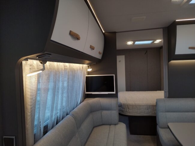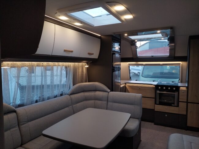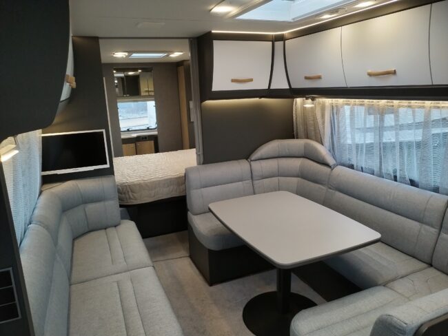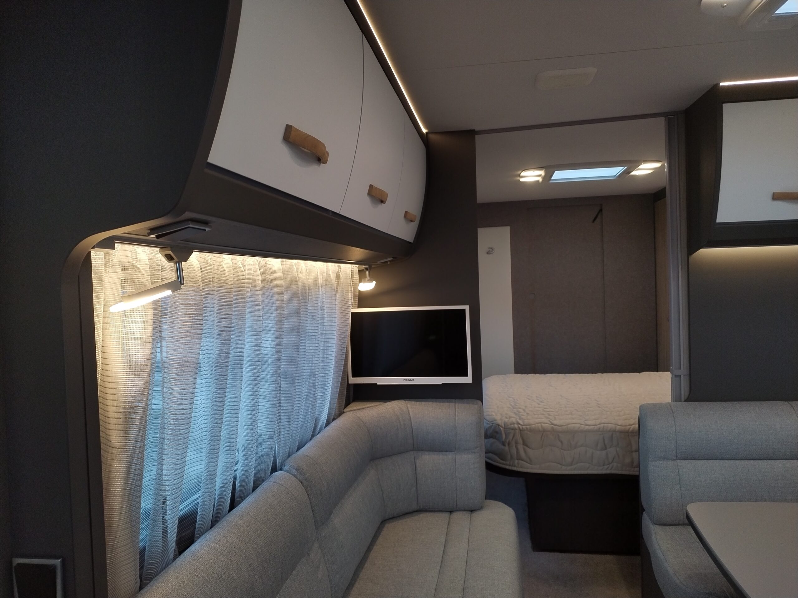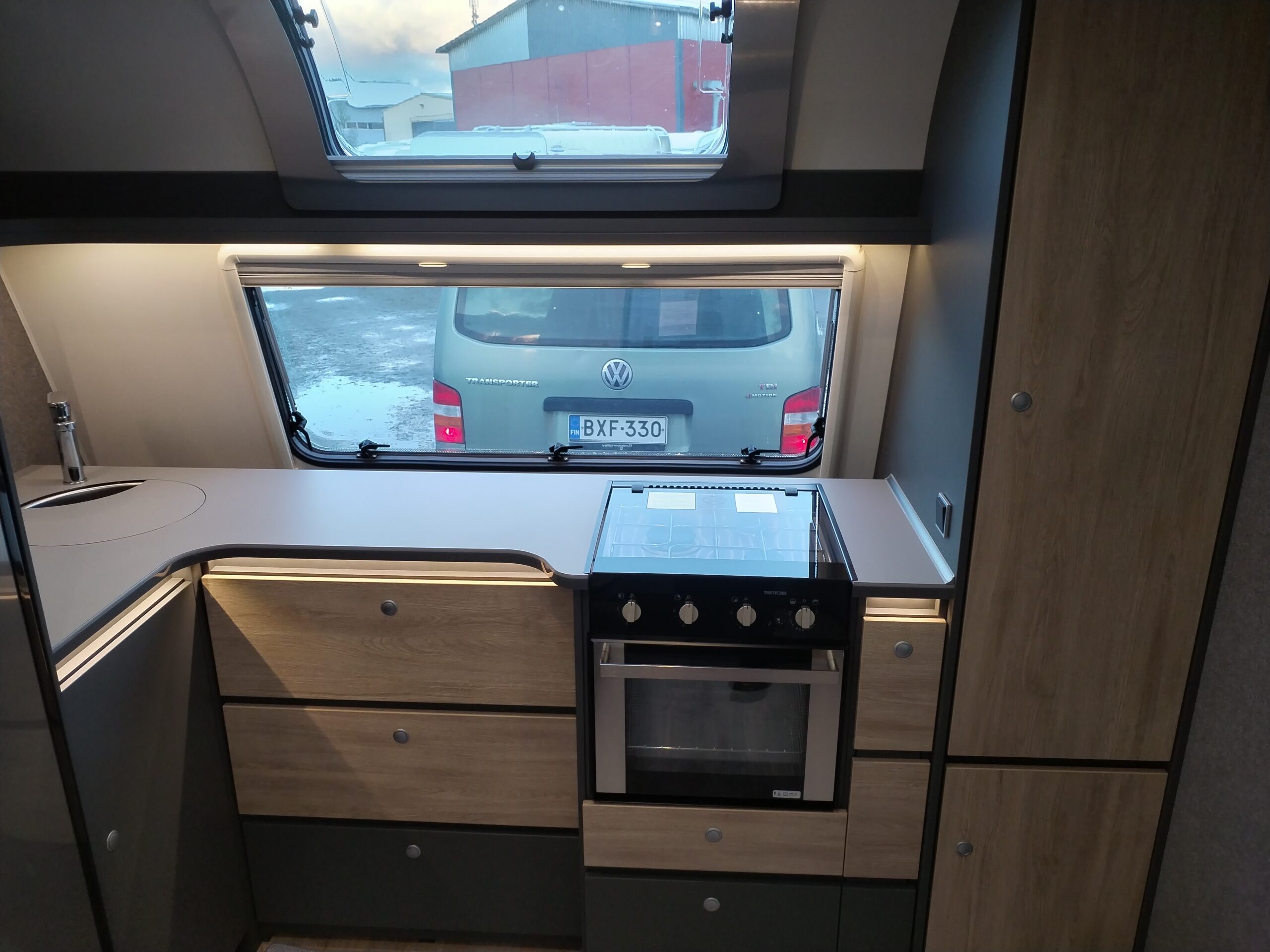 Etukeittiö, Alde-nestekeskuslämmitys, nestekiertoinen lattialämmitys, sähköpatruuna, lämmin vesi, suihkukaappi, liesi/uuni, grilli, iso jääkaappi/pakastin, mikro-uuni, kiinteä raikasvesisäiliö, eristetty harmaavesisäiliö, niskatyynyt istuinruhmässä, mattosarja, kasetti-wc, kasettiverhot, akku-/ laturivarustus, tv-antenni, tv-teline, tavaraluukku, kitkavetopää, hyttysovi, automaattinen kaasupullonvaihtaja, kaasun-ulosotto sivuseinässä, kaasupullo...Frontkök, Alde vattenburen-centralvärme, elvärme, Alde-golvvärme, varmvatten, duschskåp, spis/ugn, grill, stor kyl-/frysskåp, mikro-ugn, fast vattentank, gråvattentank under vagn, nackstöd sittgrupp, golvmattor, kasettrullgardin, kasett-wc, tv-antenn, tv-hållare, batteri/laddare, lastlucka, säkerhetskoppling, myggnätsdörr, gasol-uttag, gasflaska mm...