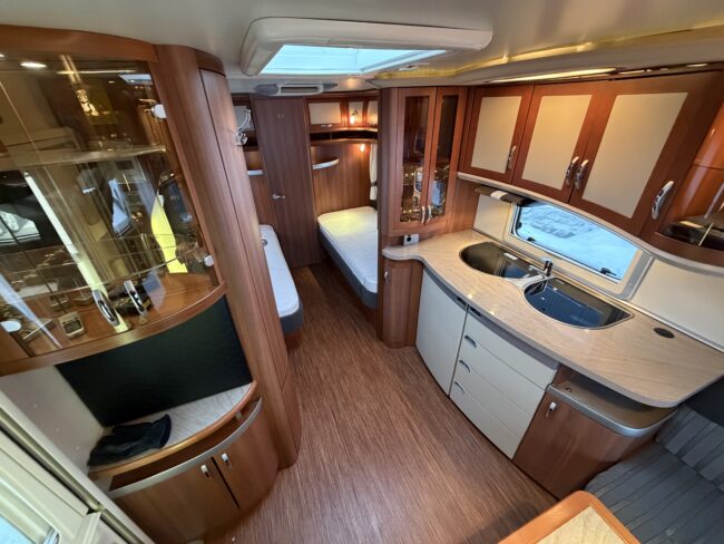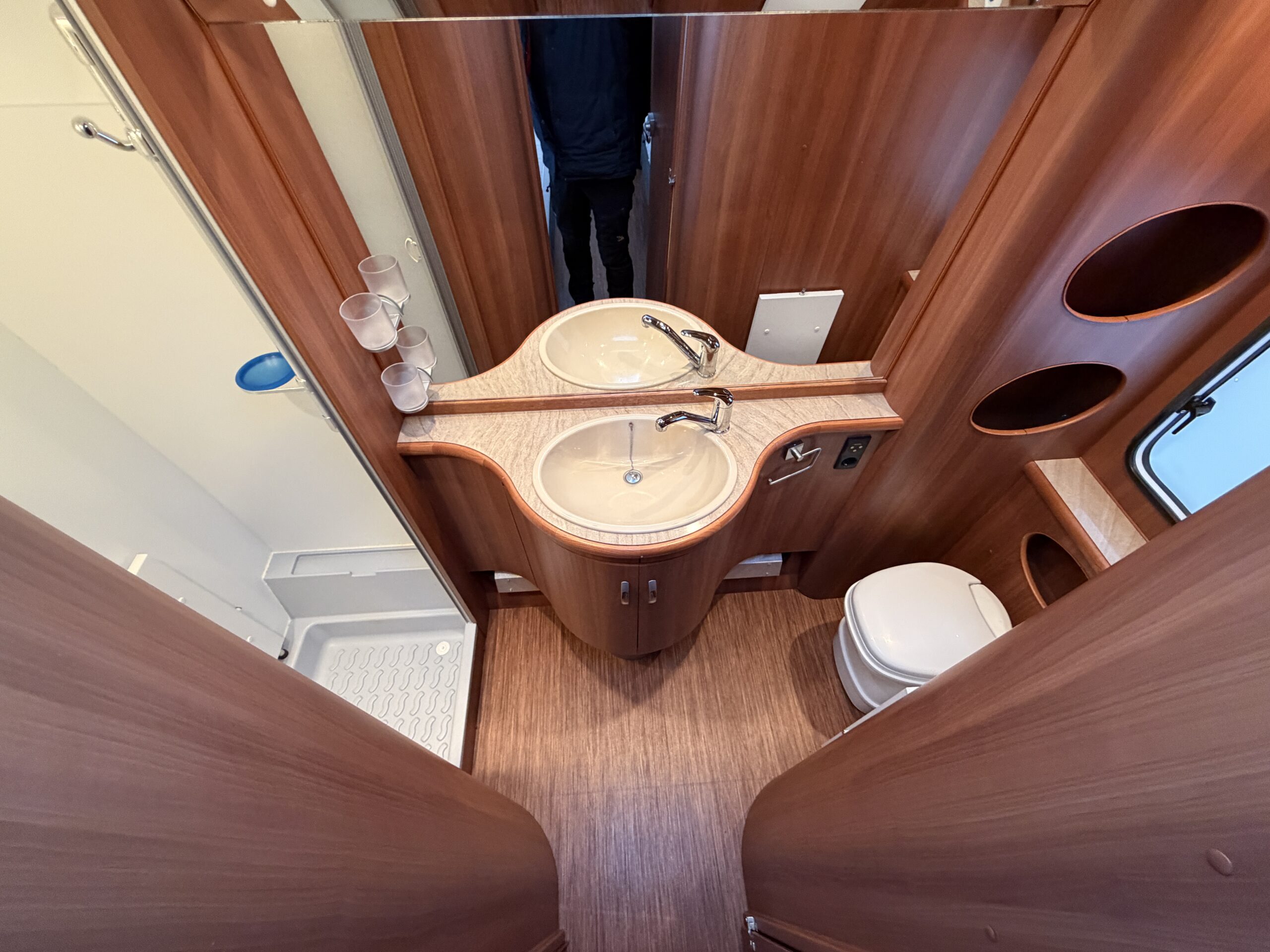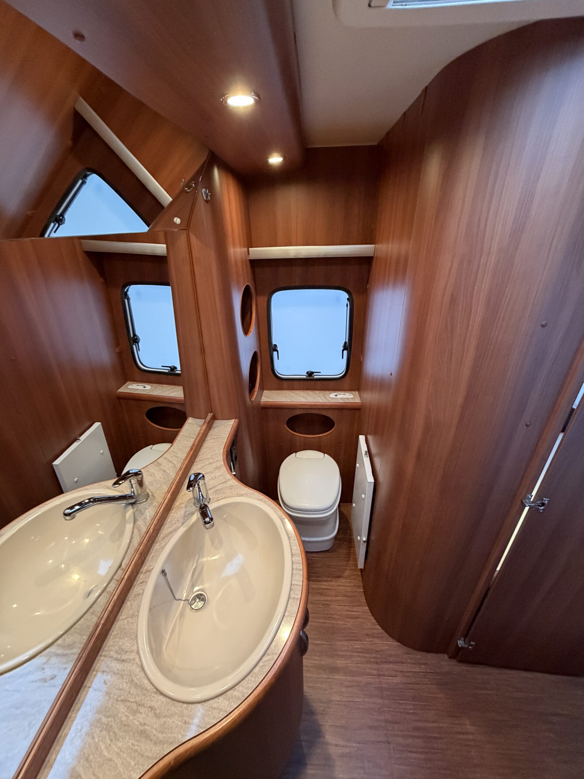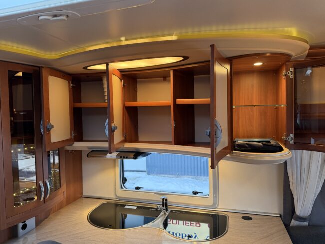 Dometic ilmastointi kaukosäädöllä, Alde-nestekeskuslämmitys, lattialämmitys, sähköpatruuna, lämmin vesi, jää-/pakastinkaappi, kaasuliesi, liesituuletin, kiinteä raikasvesisäiliö, kasettiverhot, kirkas kattoluukku, akku-/laturivarustus, tv-antenni, kitkavetopää, sähkömittari, Truma mover ajomoottorit, kaasupullo, ym...