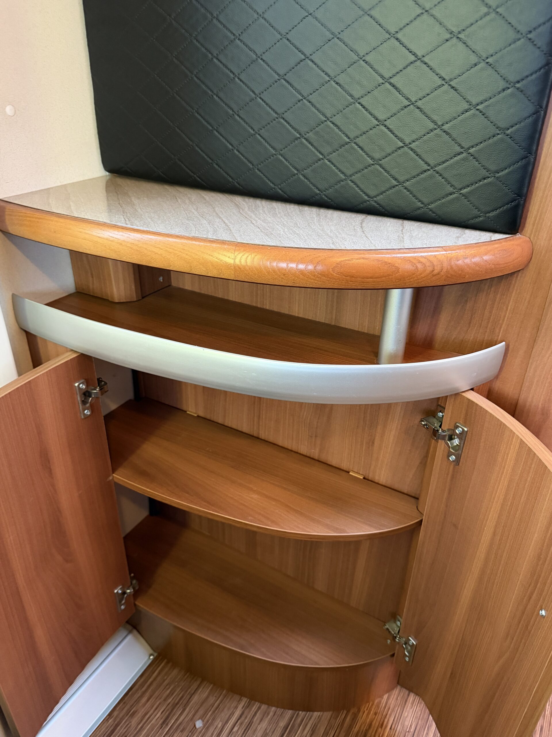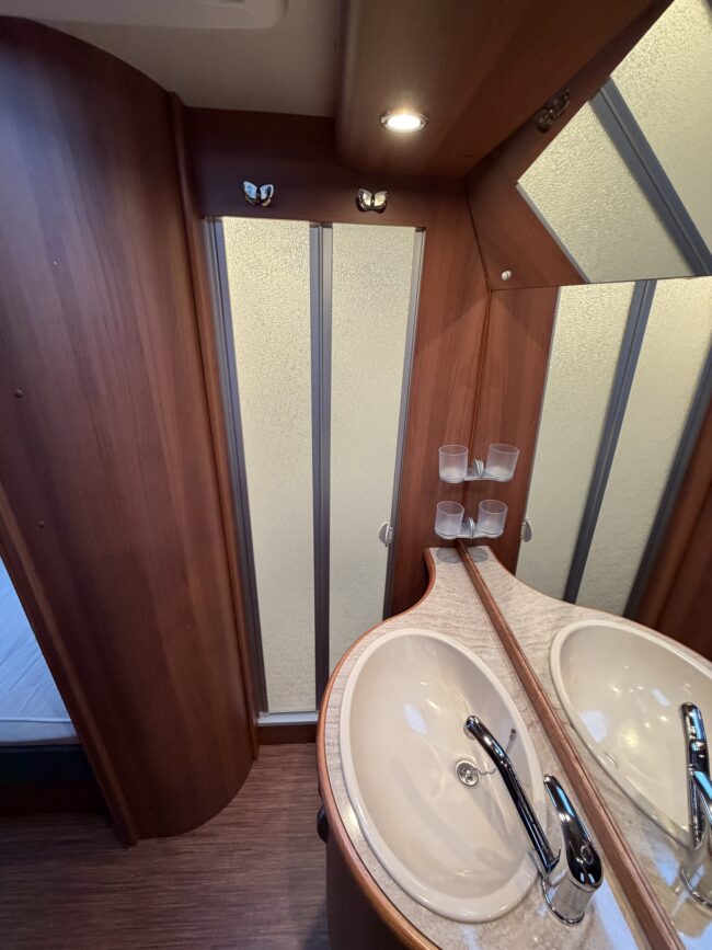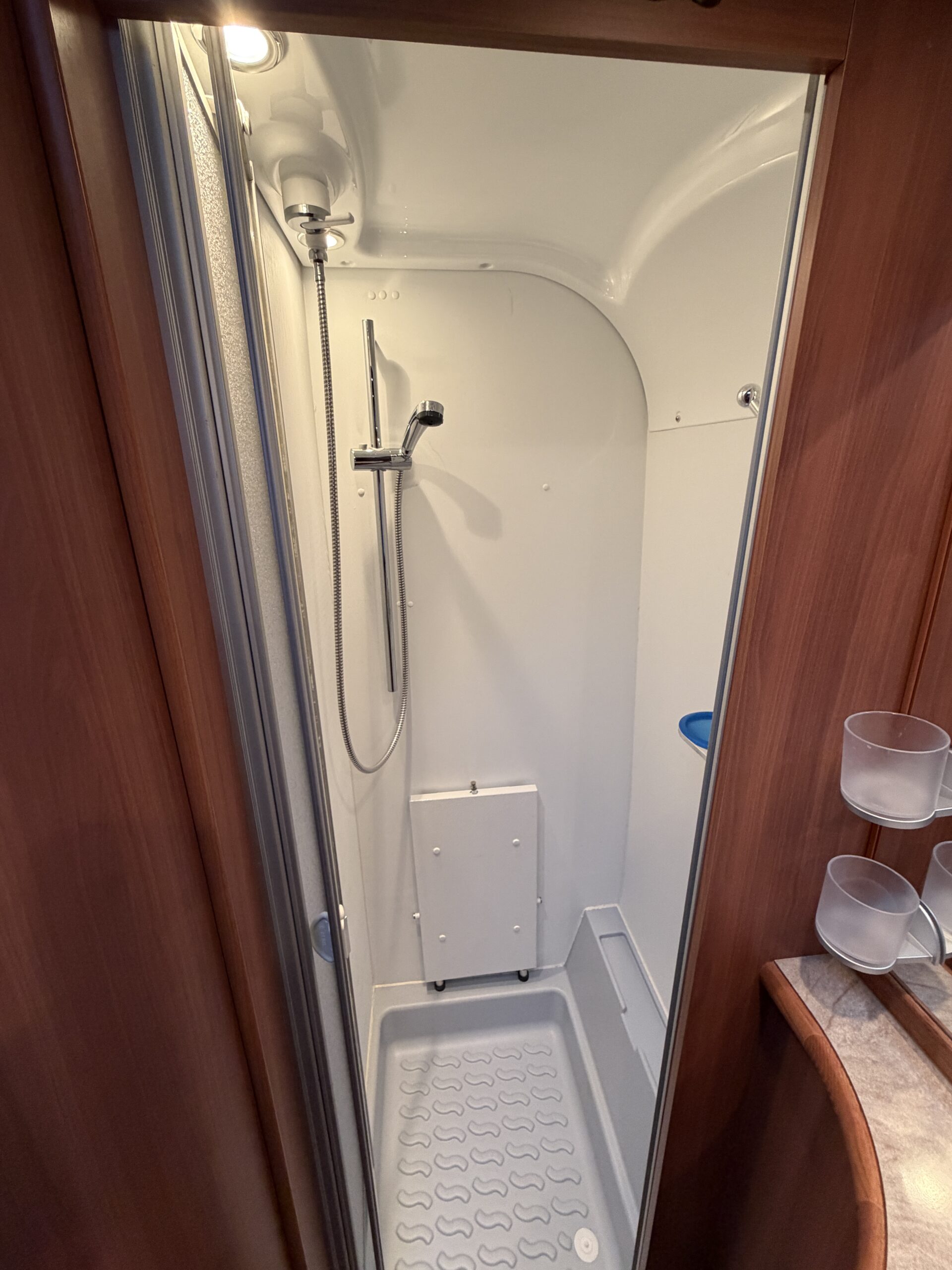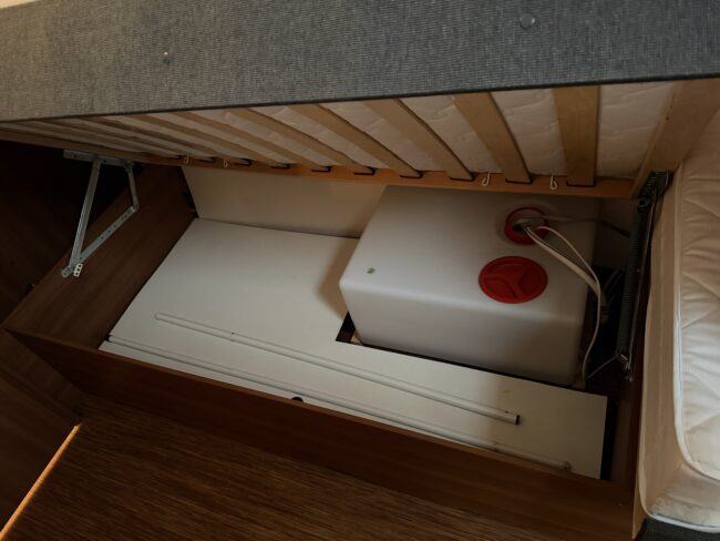 Dometic ilmastointi kaukosäädöllä, Alde-nestekeskuslämmitys, lattialämmitys, sähköpatruuna, lämmin vesi, jää-/pakastinkaappi, kaasuliesi, liesituuletin, kiinteä raikasvesisäiliö, kasettiverhot, kirkas kattoluukku, akku-/laturivarustus, tv-antenni, kitkavetopää, sähkömittari, Truma mover ajomoottorit, kaasupullo, ym...