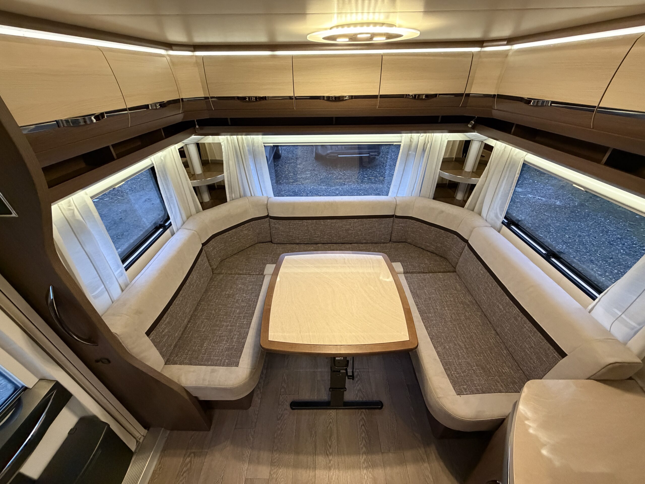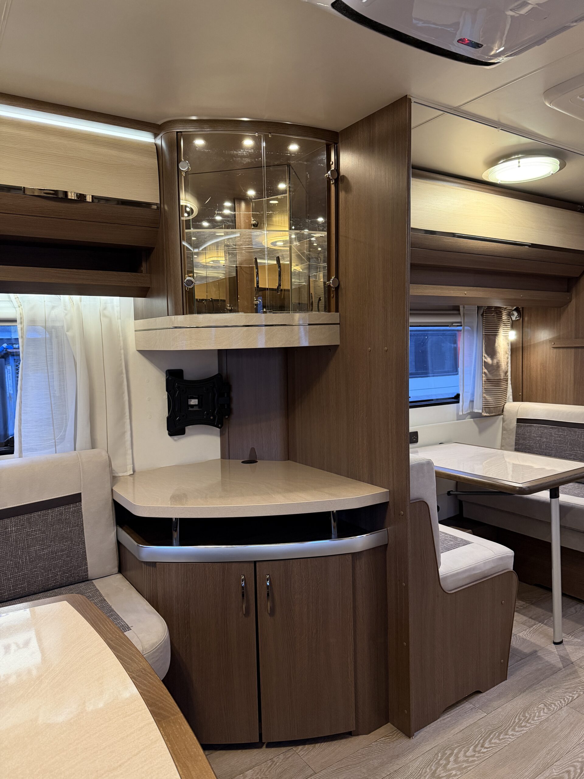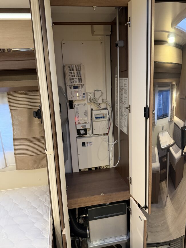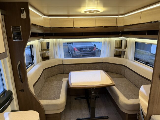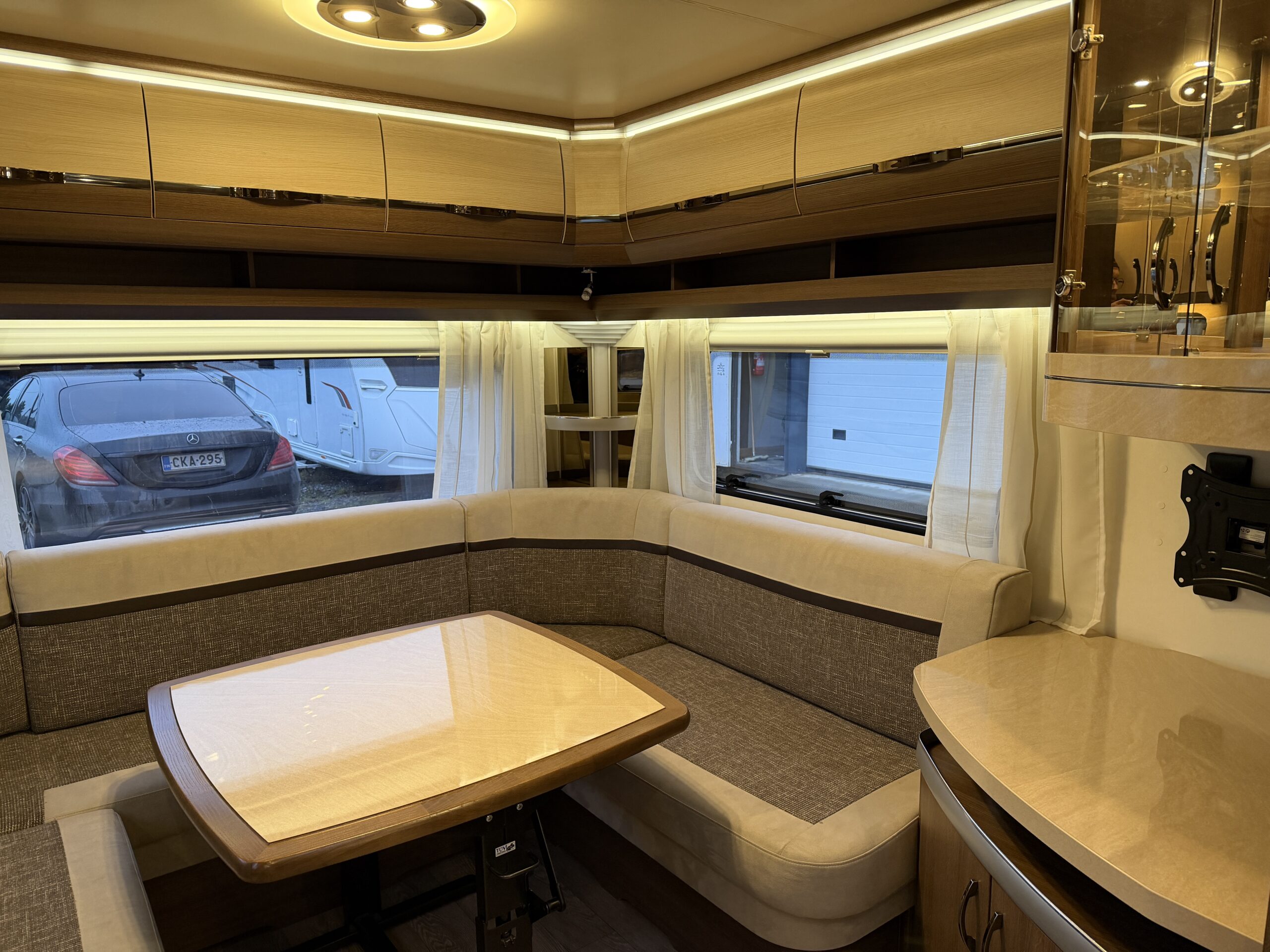 Ilmastointi, Alde-nestekeskuslämmitys, sähköpatruuna, sähkö lattialämmitys, lämmin vesi, iso jää-/pakastinkaappi, liesituuletin, mikro, kiinteä raikasvesisäiliö, kasettiverhot, kirkas kattoluukku, tv-antenni, tv-teline, akku-/laturivarustus, sähkömittari, telttapalvelu, kitkavetopää, hyttysovi, alu-vanteet, kaasupullo, ym...