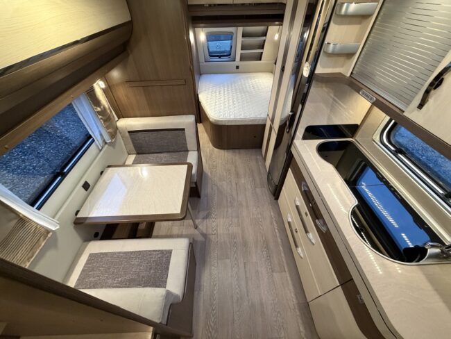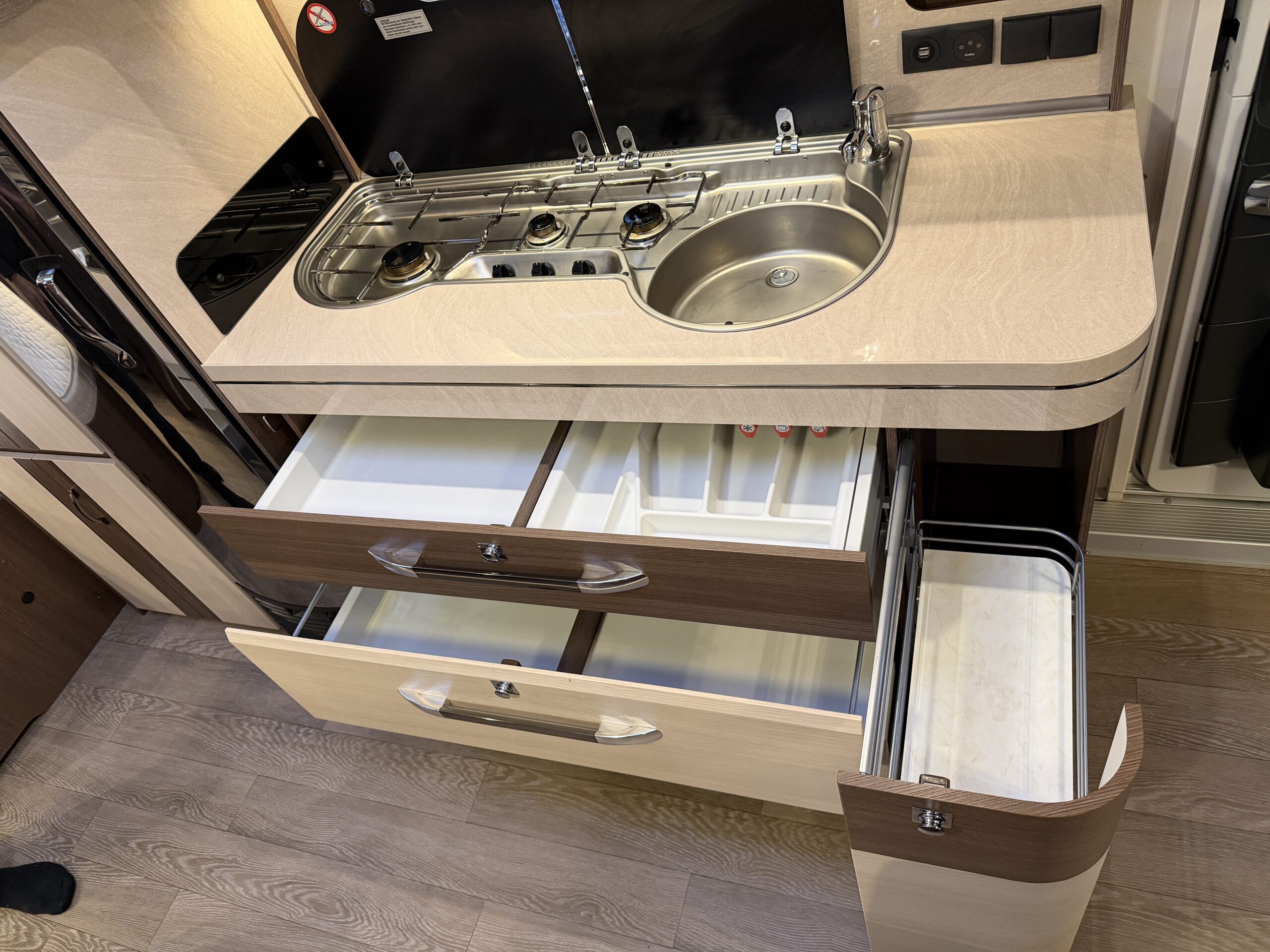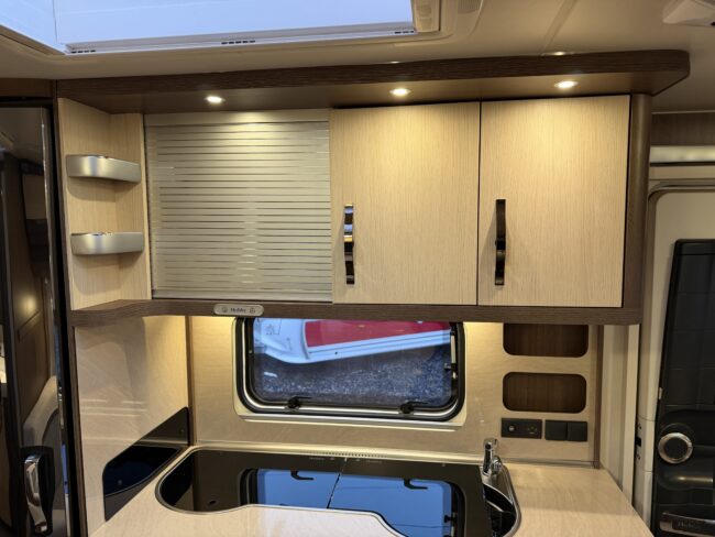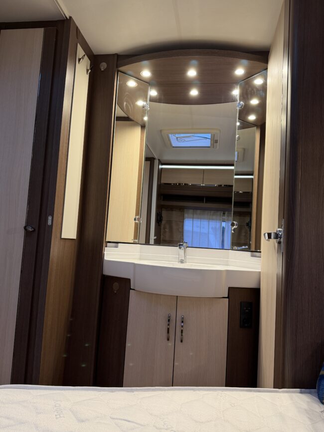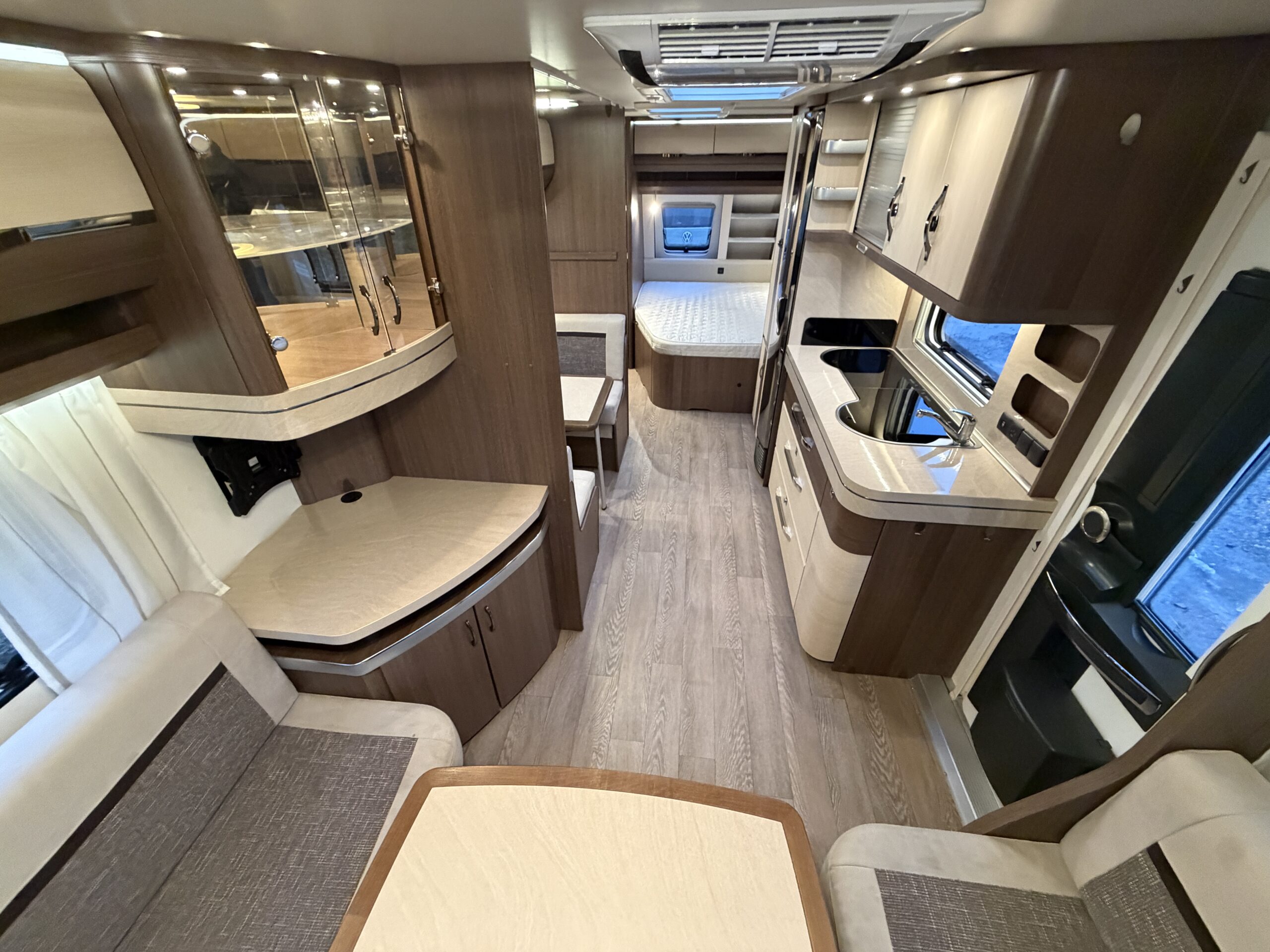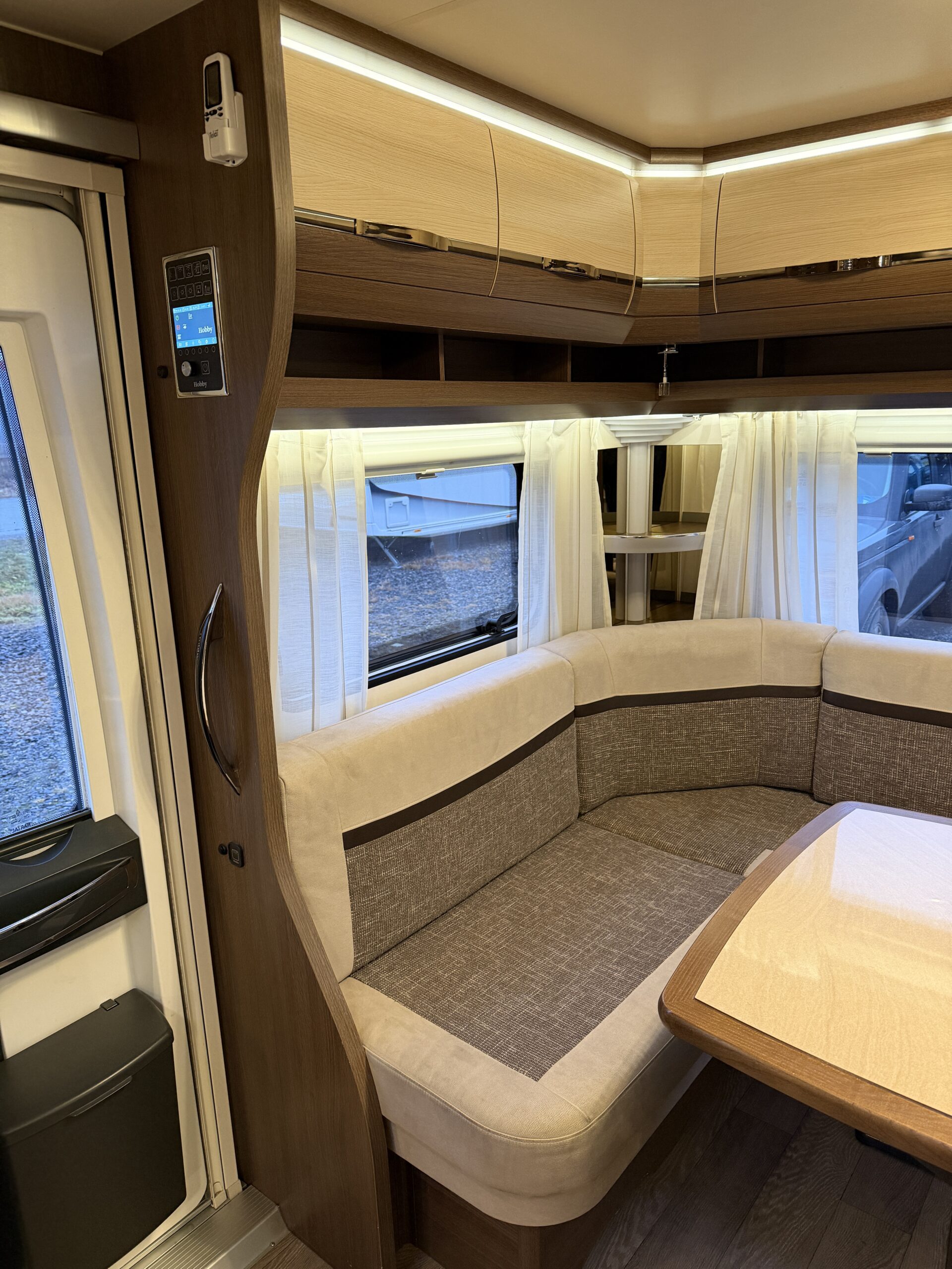 Ilmastointi, Alde-nestekeskuslämmitys, sähköpatruuna, sähkö lattialämmitys, lämmin vesi, iso jää-/pakastinkaappi, liesituuletin, mikro, kiinteä raikasvesisäiliö, kasettiverhot, kirkas kattoluukku, tv-antenni, tv-teline, akku-/laturivarustus, sähkömittari, telttapalvelu, kitkavetopää, hyttysovi, alu-vanteet, kaasupullo, ym...