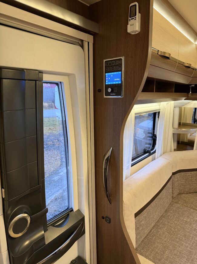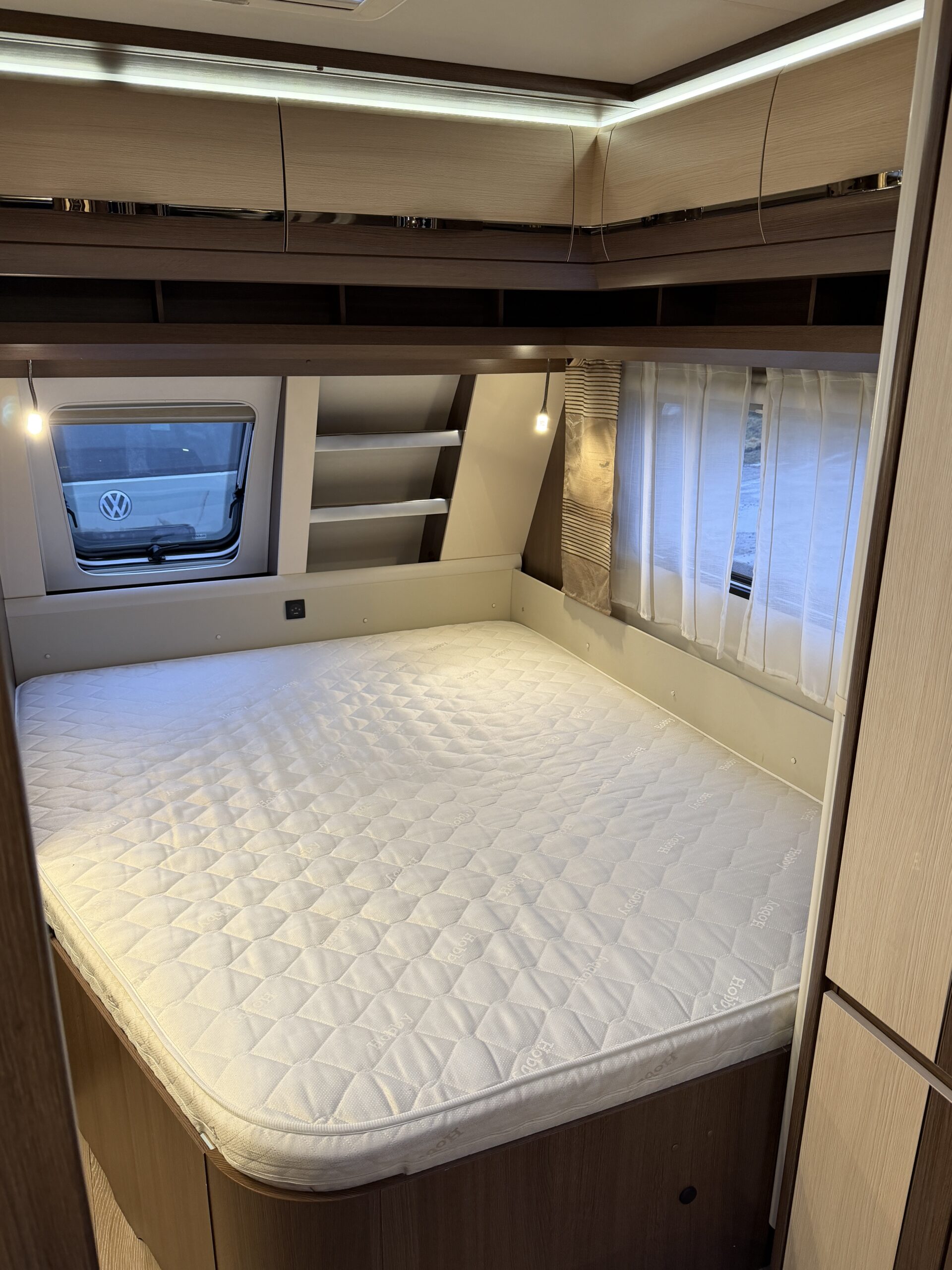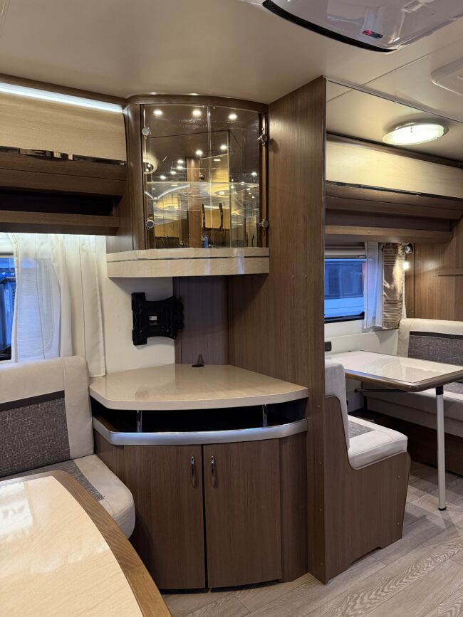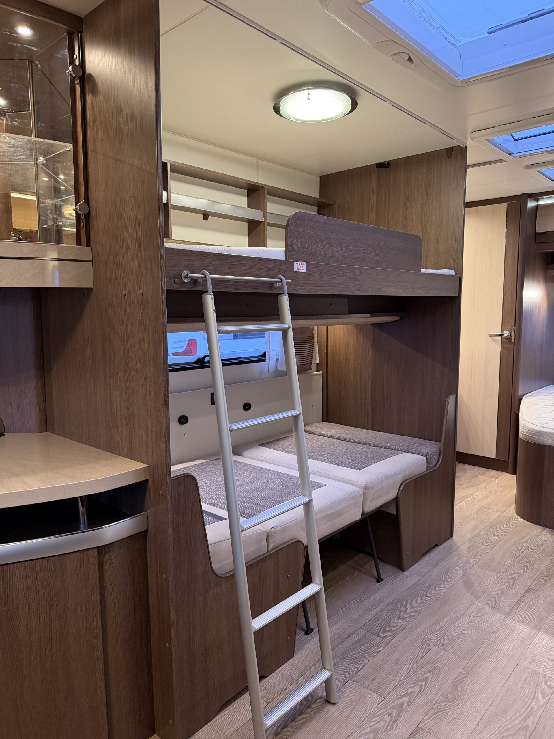 Luftkonditionering, Alde vattenburen-centralvärme, elvärme, el-golvvärme, varmvatten, stor kyl-/frysskåp, spisfläkt, mikro, fast vattentank, kasettrullgardin, takfönster, tv-antenn, tv-väggfäste, batteri/laddare, elmätare, tältservice, säkerhetskoppling, myggnätsdörr, alu-fälgar, gasflaska, mm...