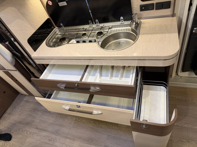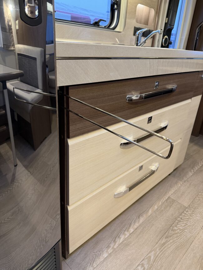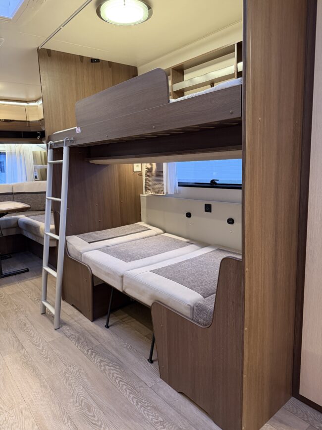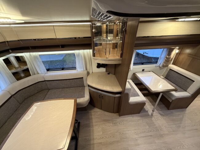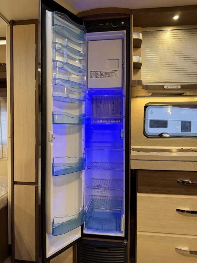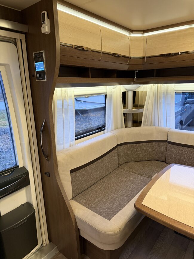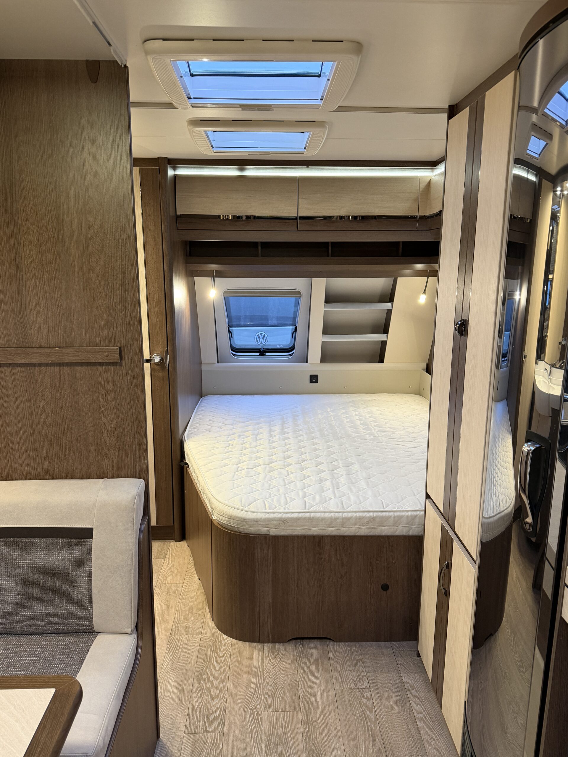 Luftkonditionering, Alde vattenburen-centralvärme, elvärme, el-golvvärme, varmvatten, stor kyl-/frysskåp, spisfläkt, mikro, fast vattentank, kasettrullgardin, takfönster, tv-antenn, tv-väggfäste, batteri/laddare, elmätare, tältservice, säkerhetskoppling, myggnätsdörr, alu-fälgar, gasflaska, mm...