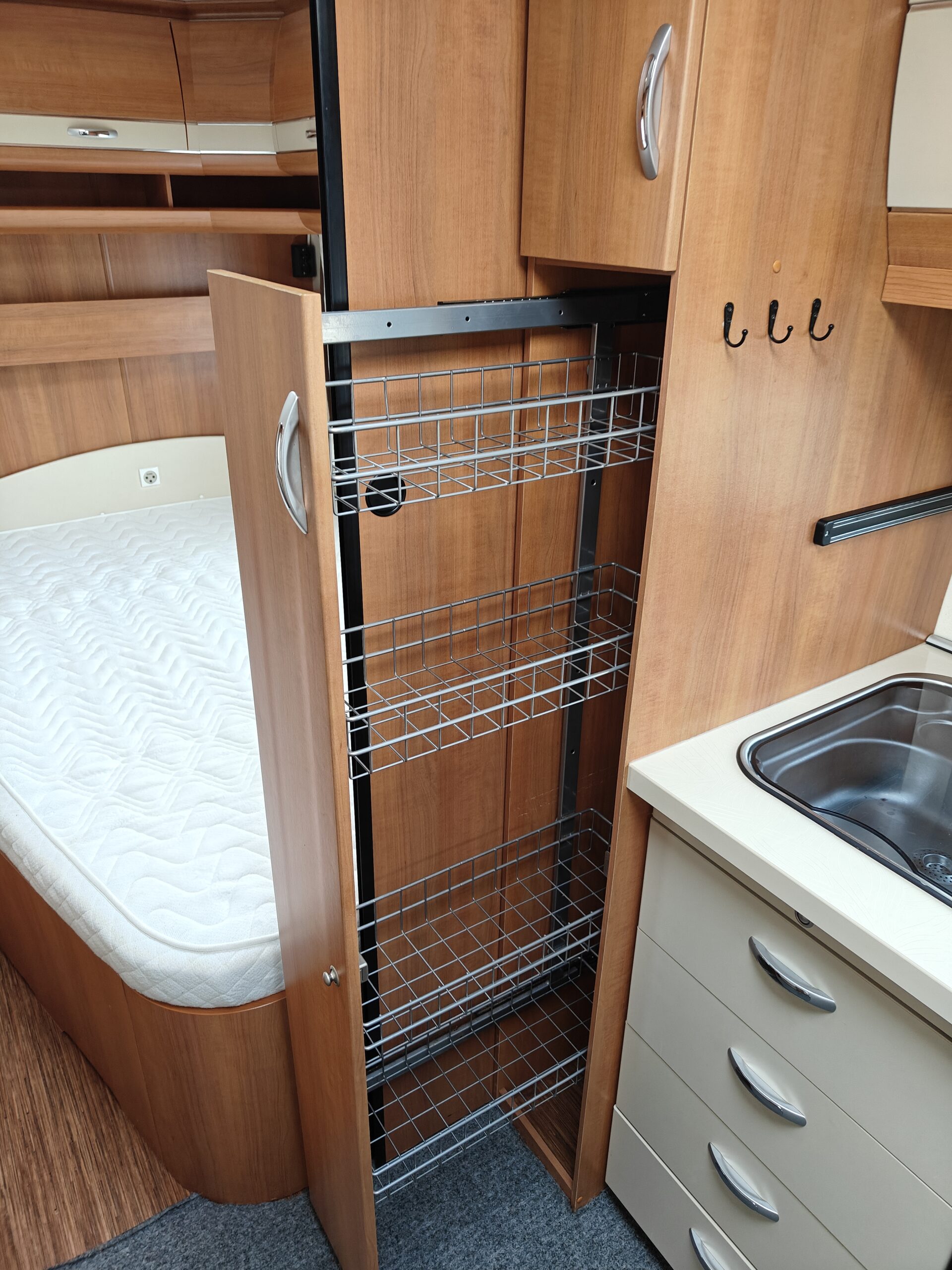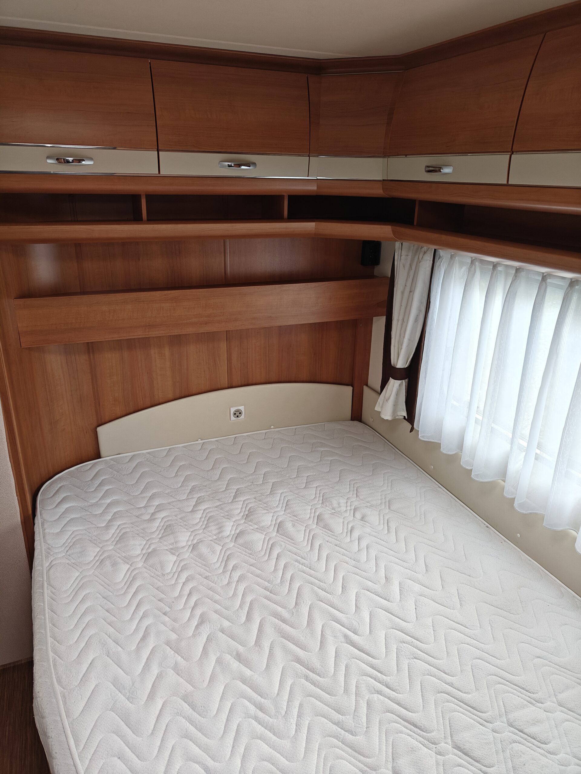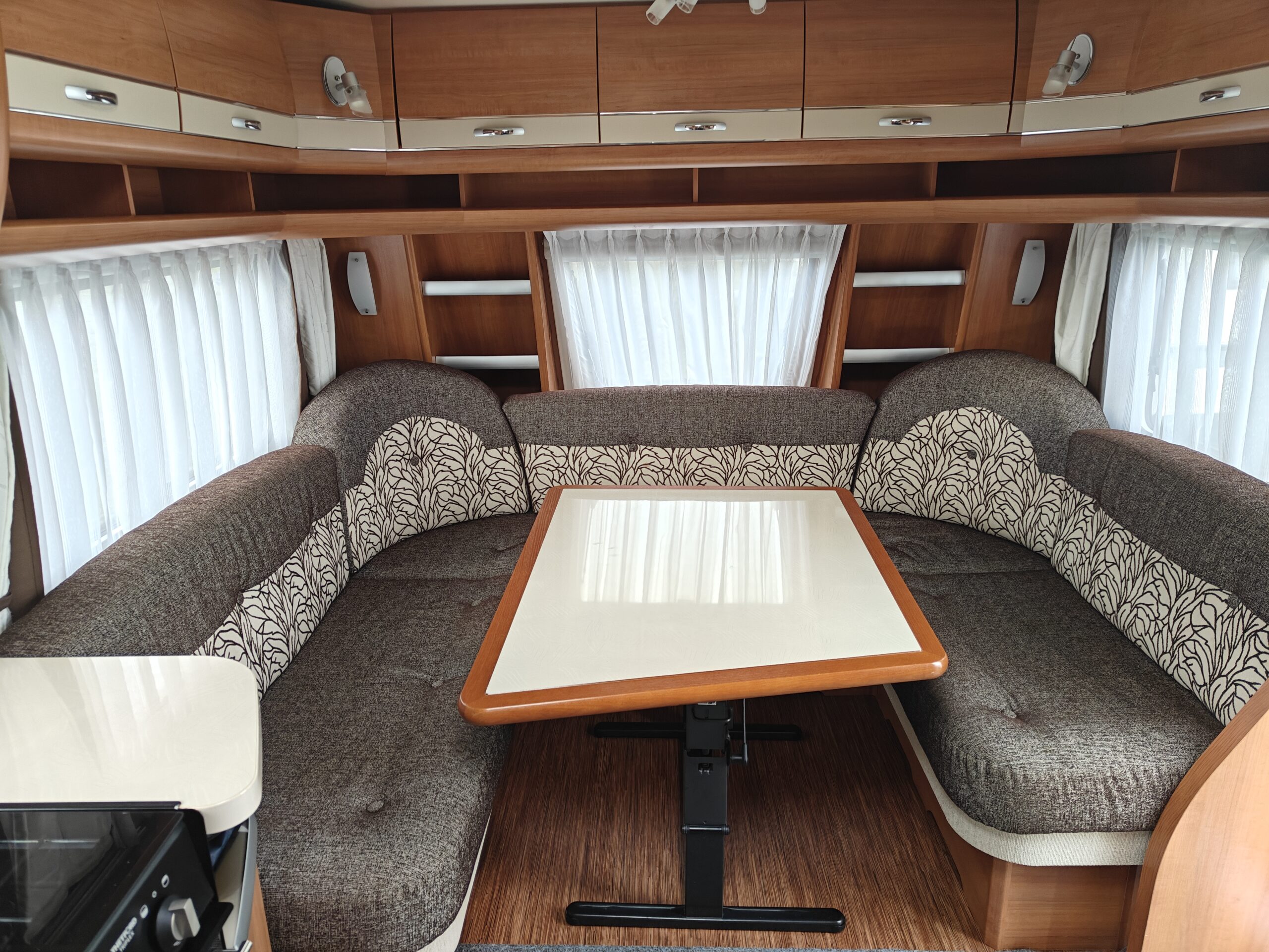 3-våningssängar, Alde vattenburen-centralvärme, elvärme, el-golvvärme, varmvatten, stor kyl-/frysskåp, gasol-ugn, spis, spisfläkt, fast vattentank, kasettrullgardin, takfönster, tv-antenn, batteri/laddare, tältservice, säkerhetskoppling, alufälgar, gasflaska, mm...
