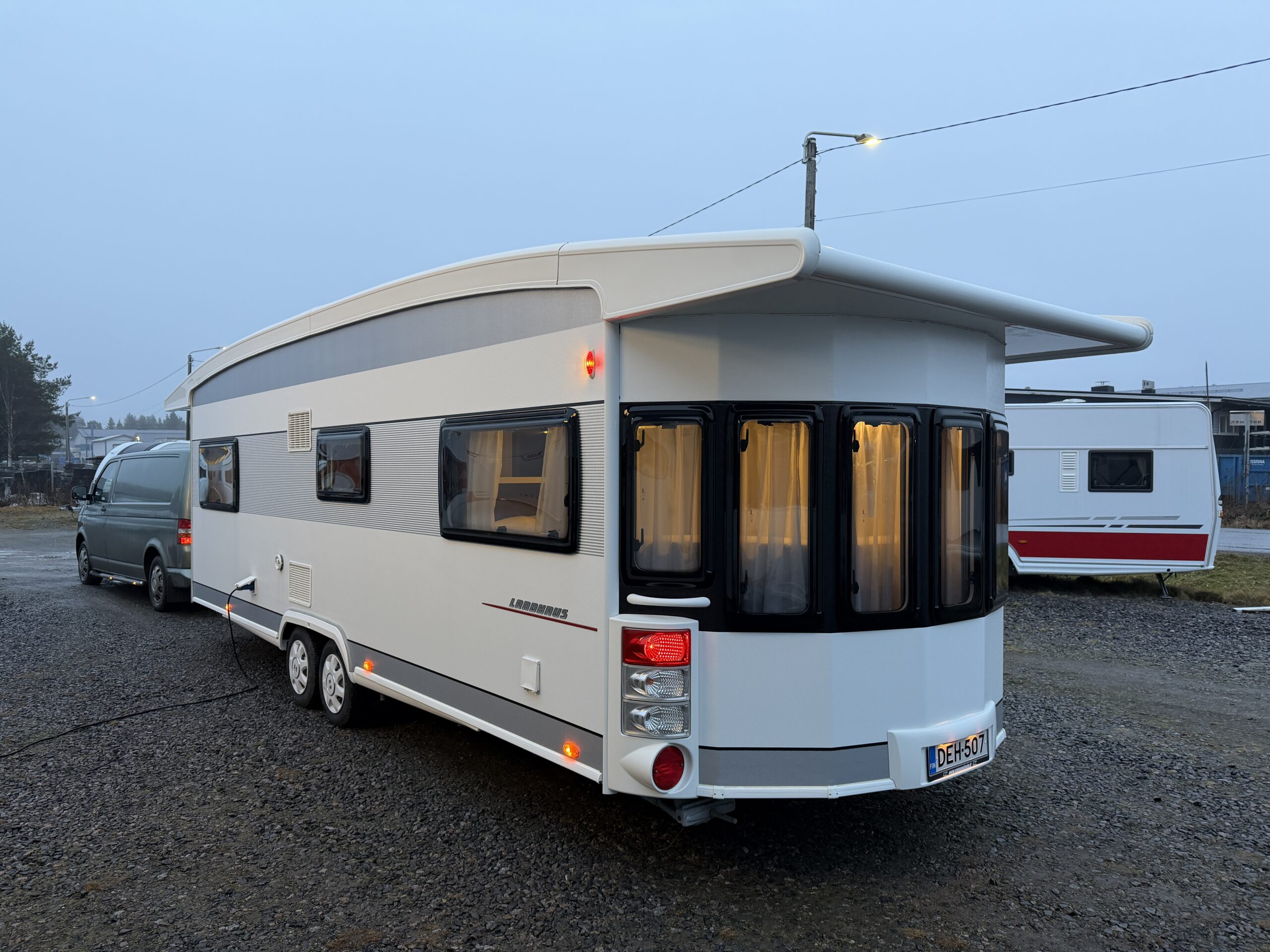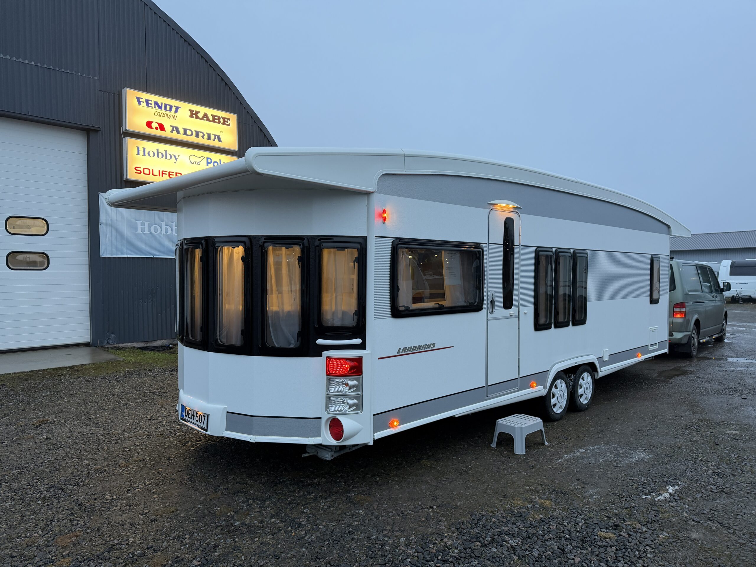 Alde-nestekeskuslämmitys, lattialämmitys, sähköpatruuna, lämmin vesi, jää-/pakastinkaappi, liesituuletin, kiinteä raikasvesisäiliö, kasettiverhot, kirkas kattoluukku, akku-/laturivarustus, sähkömittari, telttapalvelu, tv-antenni, kitkavetopää, mattosarja, kaasupullo, ym...