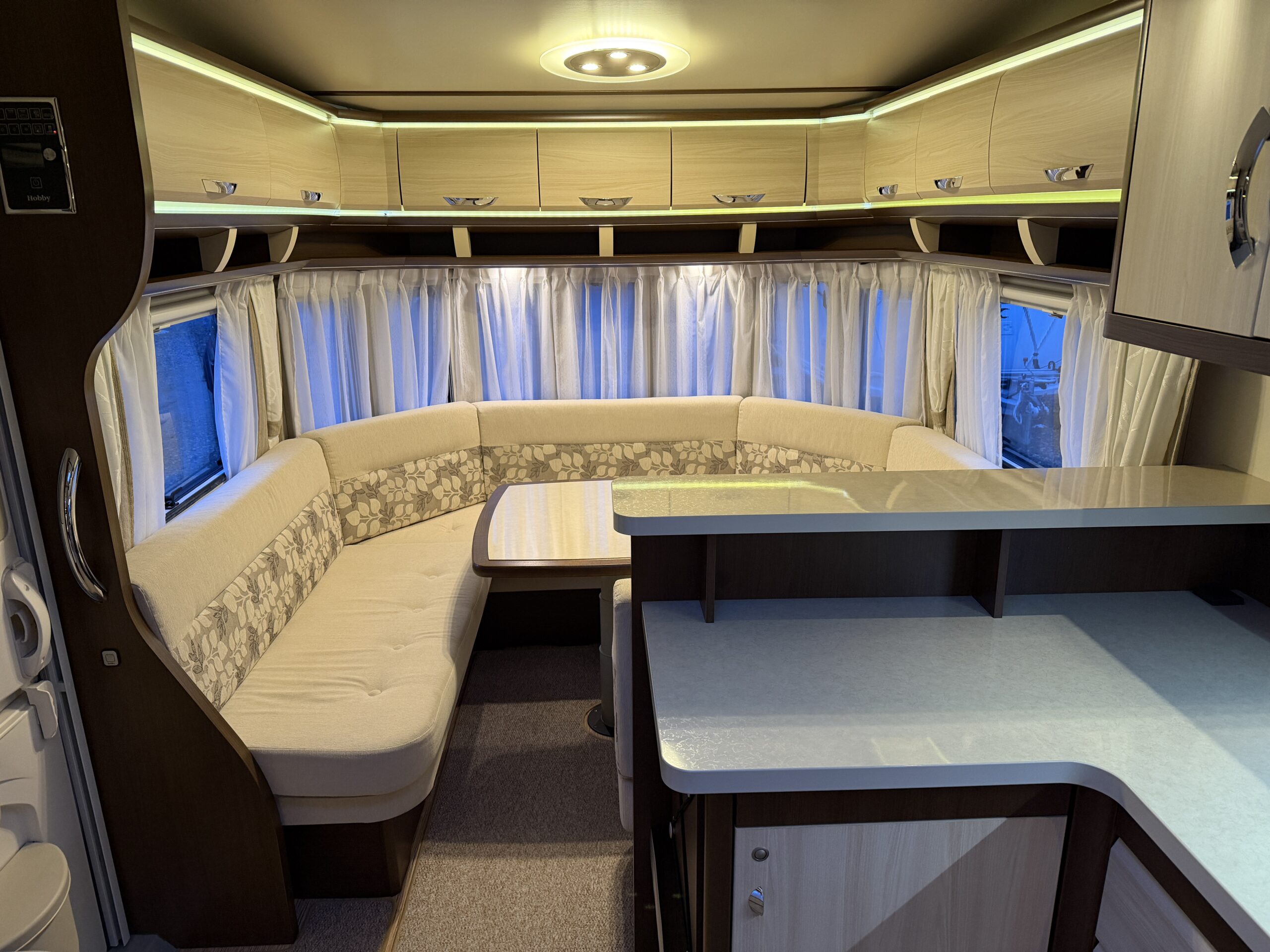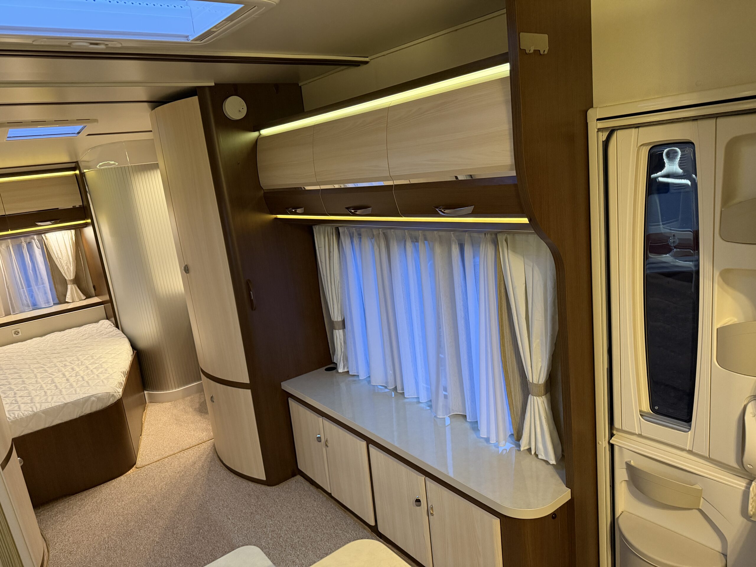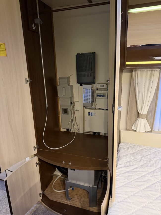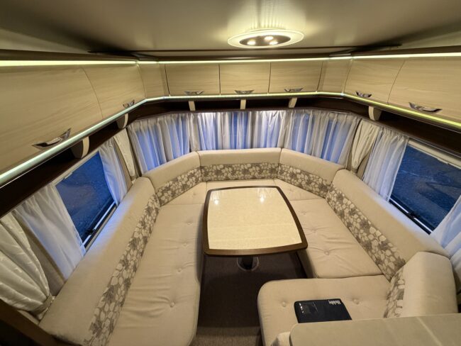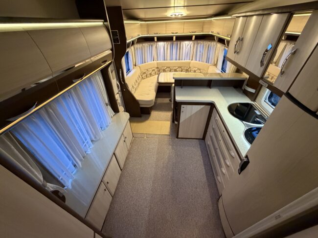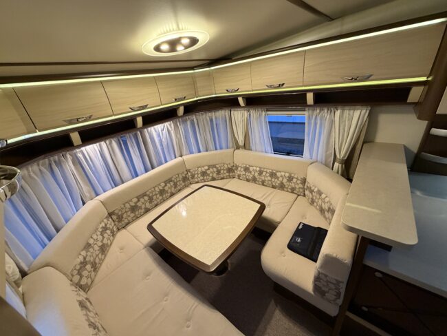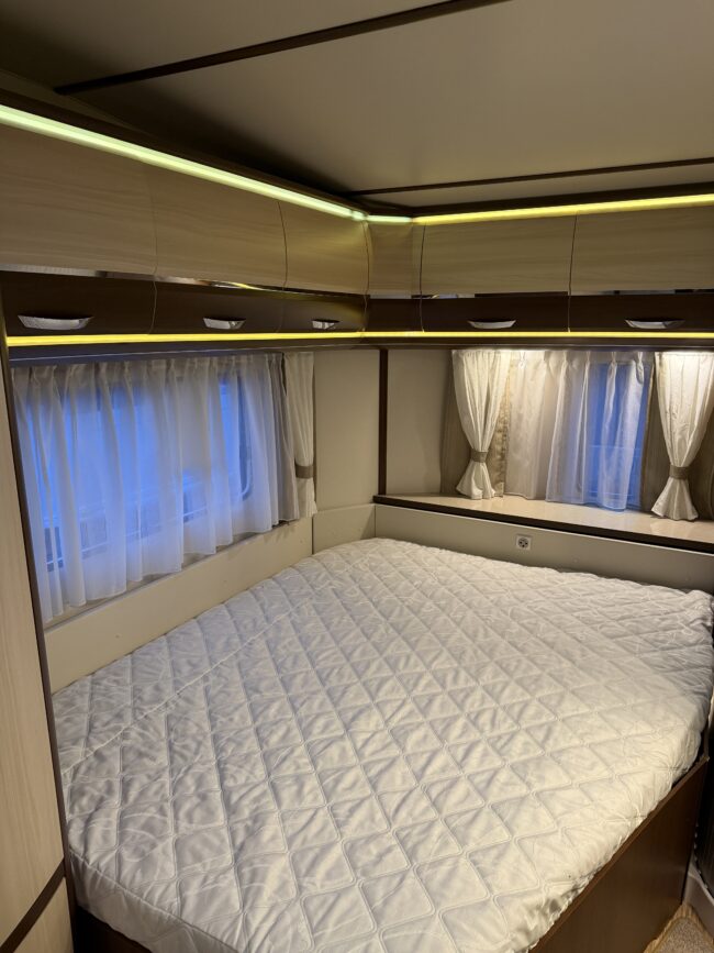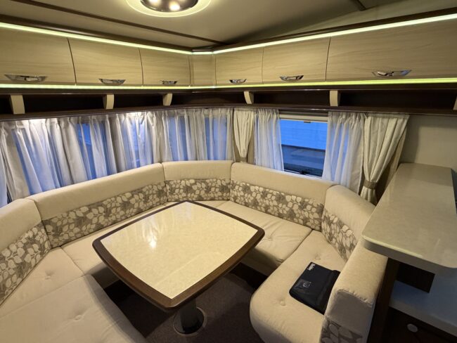 Alde vattenburen-centralvärme, golvvärme, elvärme, varmvatten, kyl-/frysskåp, spisfläkt, fast vattentank, kasettrullgardin, takfönster, tv-antenn, batteri/laddare, elmätare, säkerhetskoppling, golvmattor, gasflaska, mm...