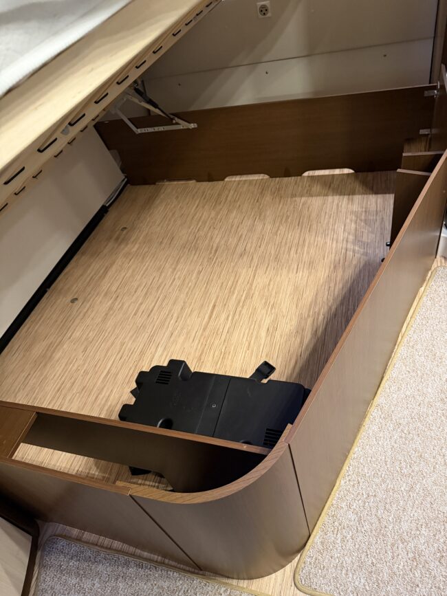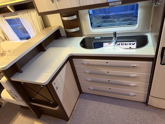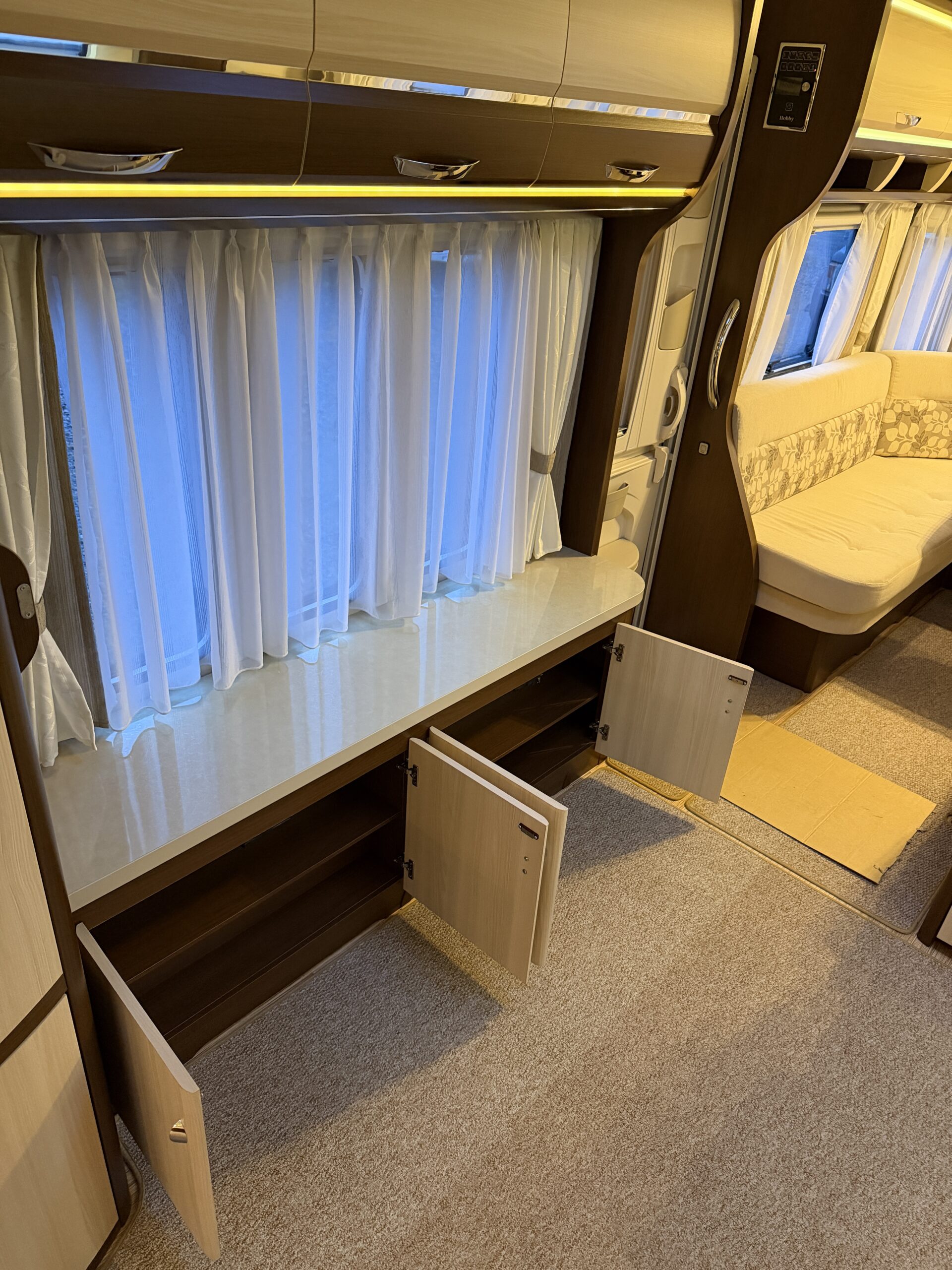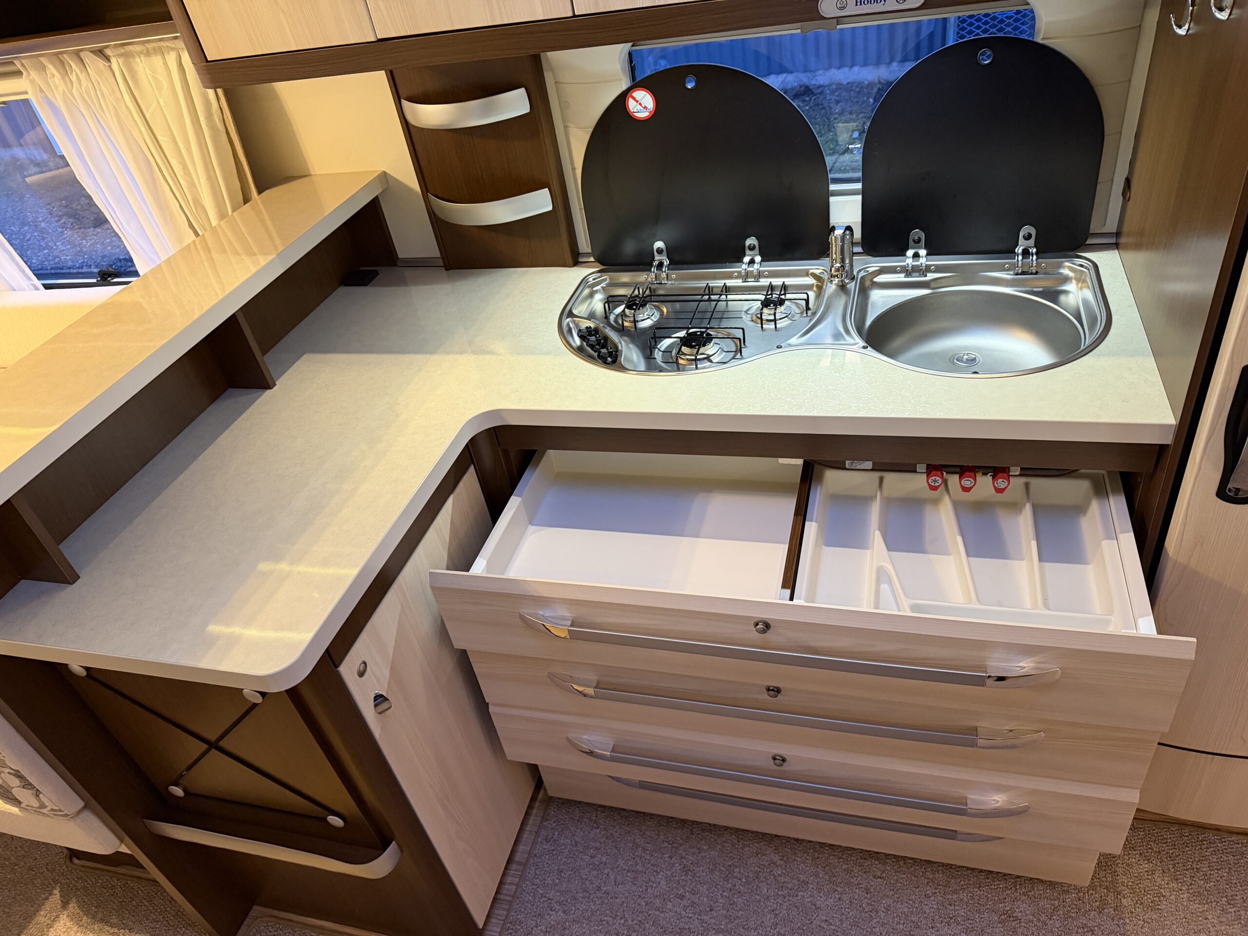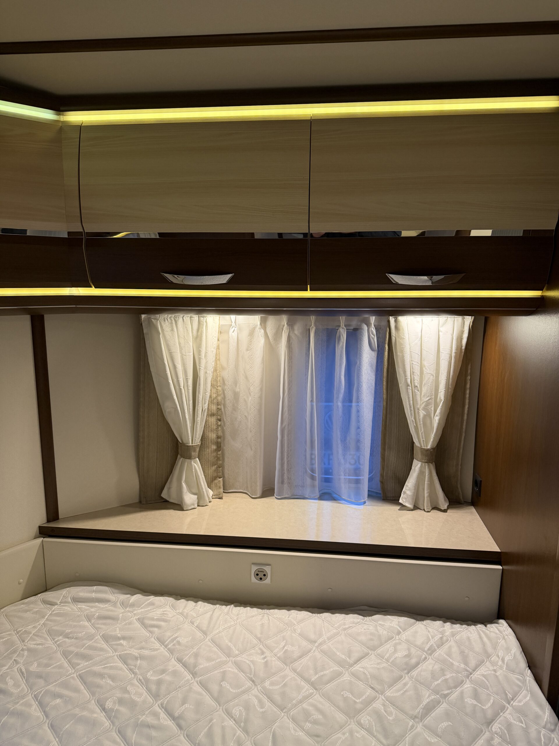 Alde vattenburen-centralvärme, golvvärme, elvärme, varmvatten, kyl-/frysskåp, spisfläkt, fast vattentank, kasettrullgardin, takfönster, tv-antenn, batteri/laddare, elmätare, säkerhetskoppling, golvmattor, gasflaska, mm...