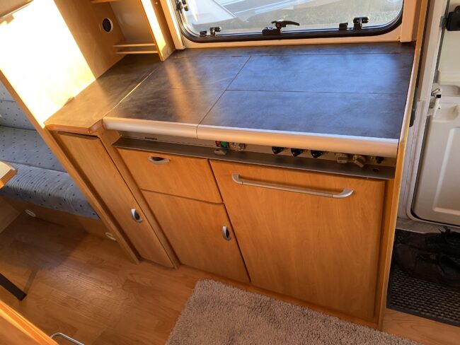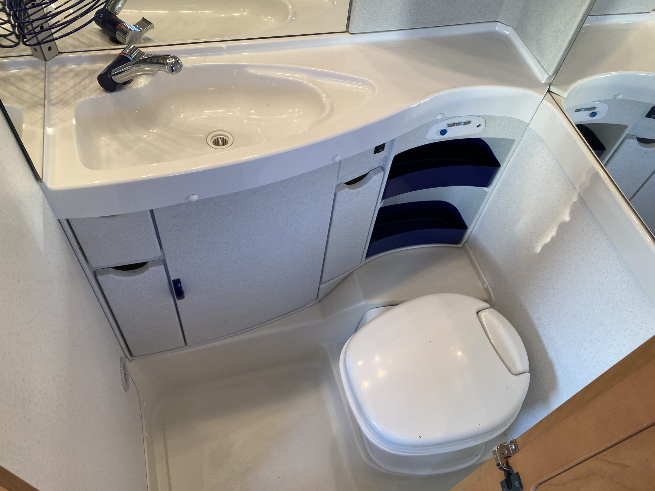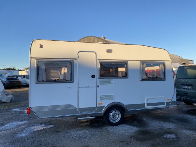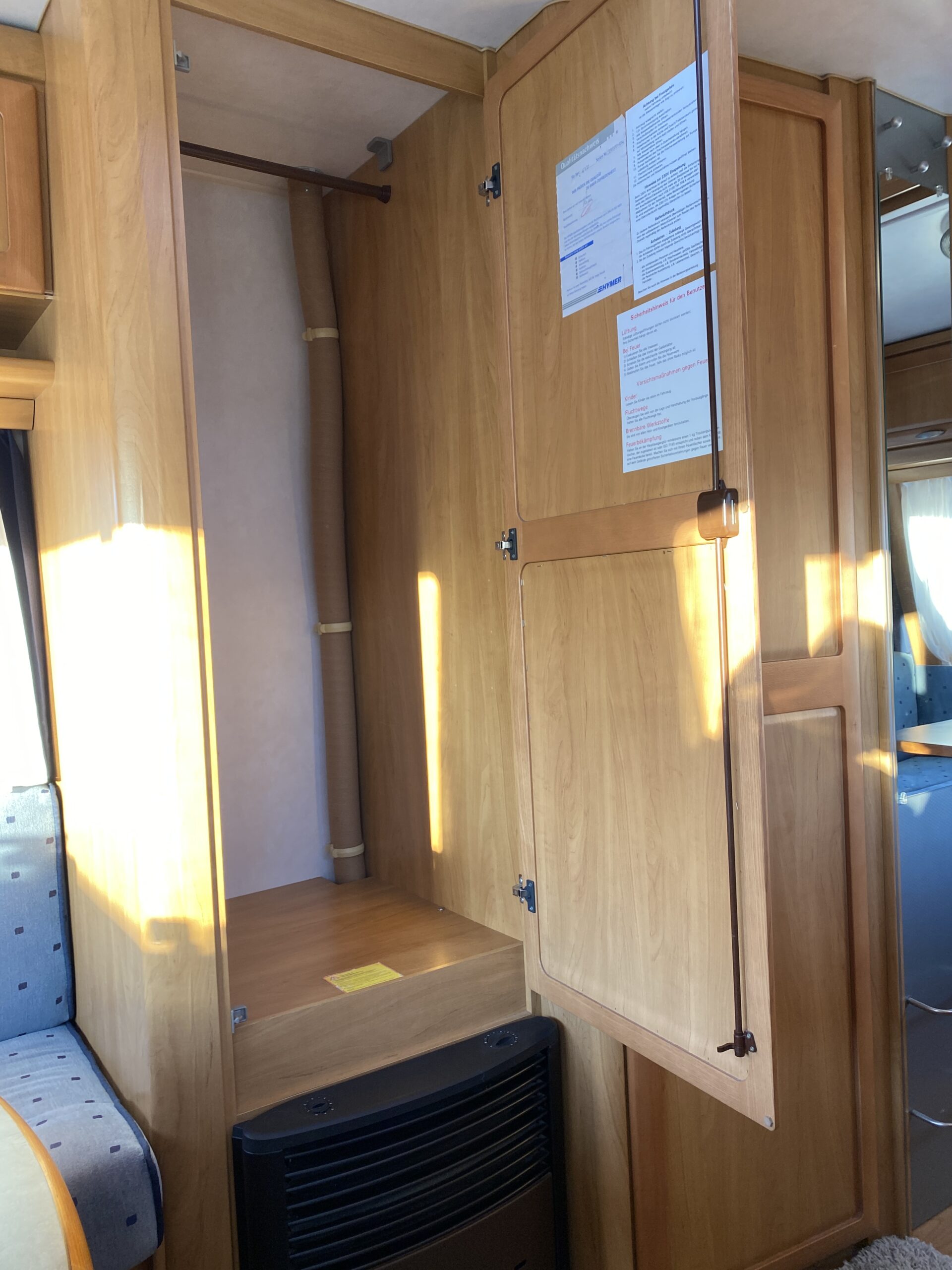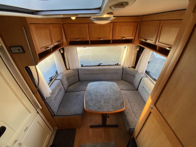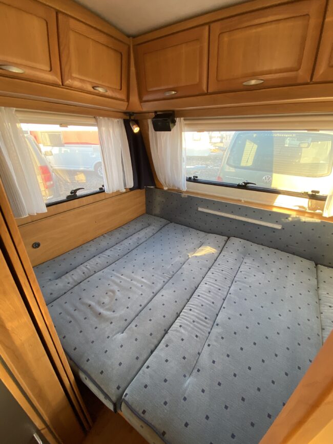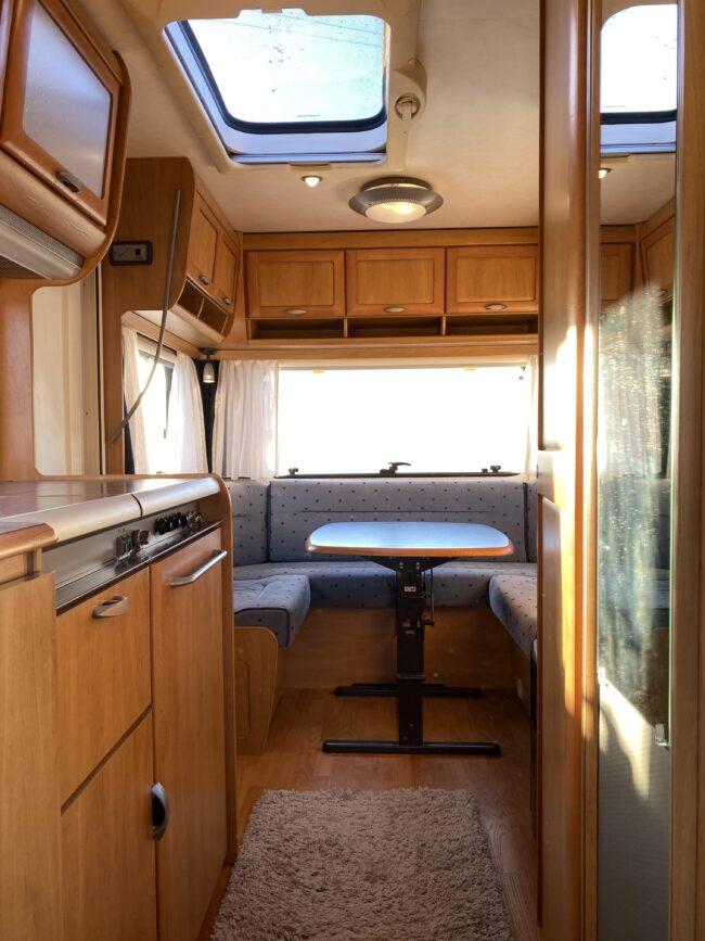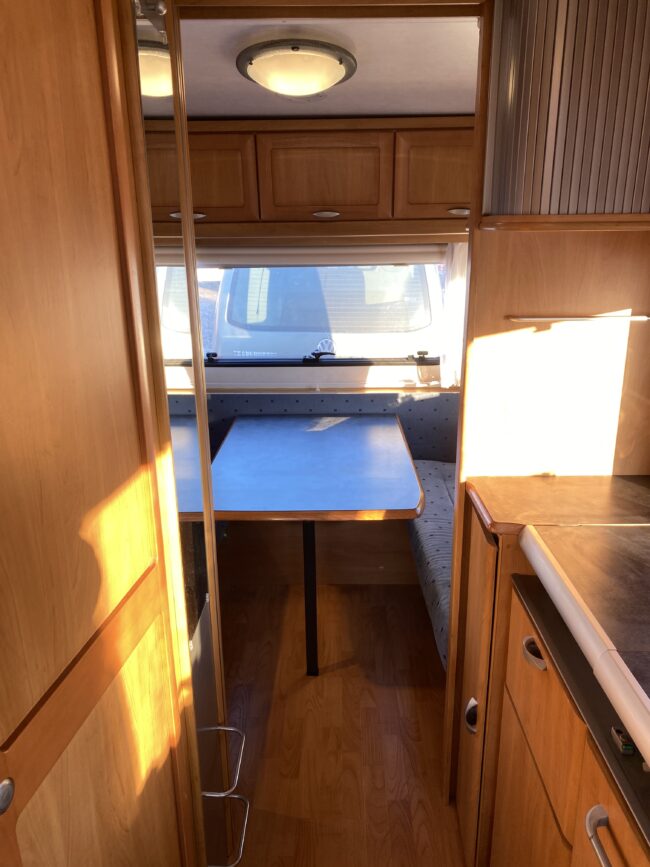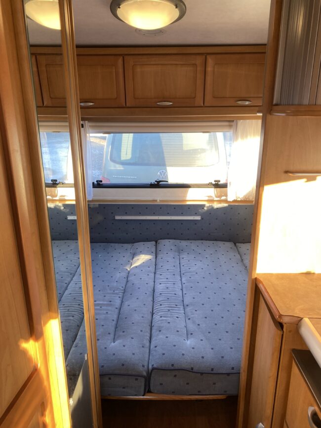 Truma-ilmakeskuslämmitys, lämmin vesi, jääkaappi, liesituuletin, kasetti-wc, kasettiverhot, iso kirkas-kattoluukku, akku-/laturivarustus, radio, caravankaapeli, peilit, varoituskolmio, raikasvesisäiliö, kitkavetopää, vararengas, tavaraluukku, sähkömittari, Integroitu porras,m kaasupullo....