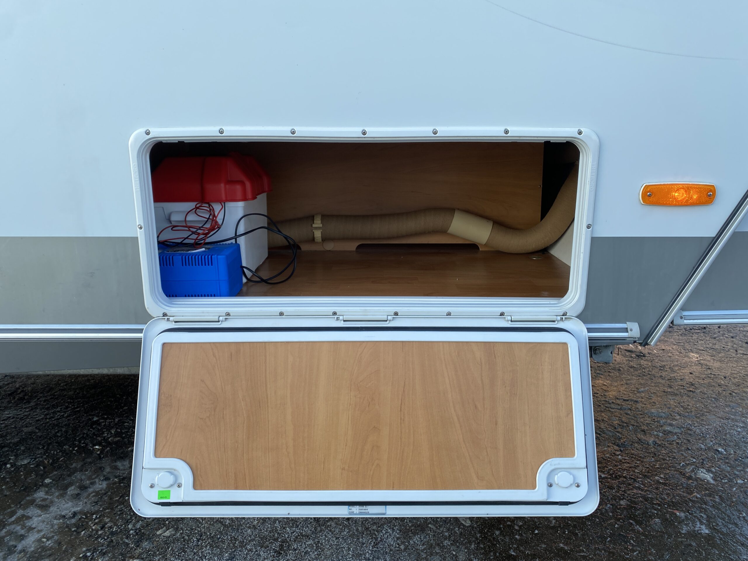 Truma-centralluftvärme, varmvatten, vattentank, kylskåp, spisfläkt, takfönster, kasettrullgardin, kasett-wc, batteri/laddare, radio, säkerhetskoppling, reservhjul, lastlucka, elmätare, gasflaska...