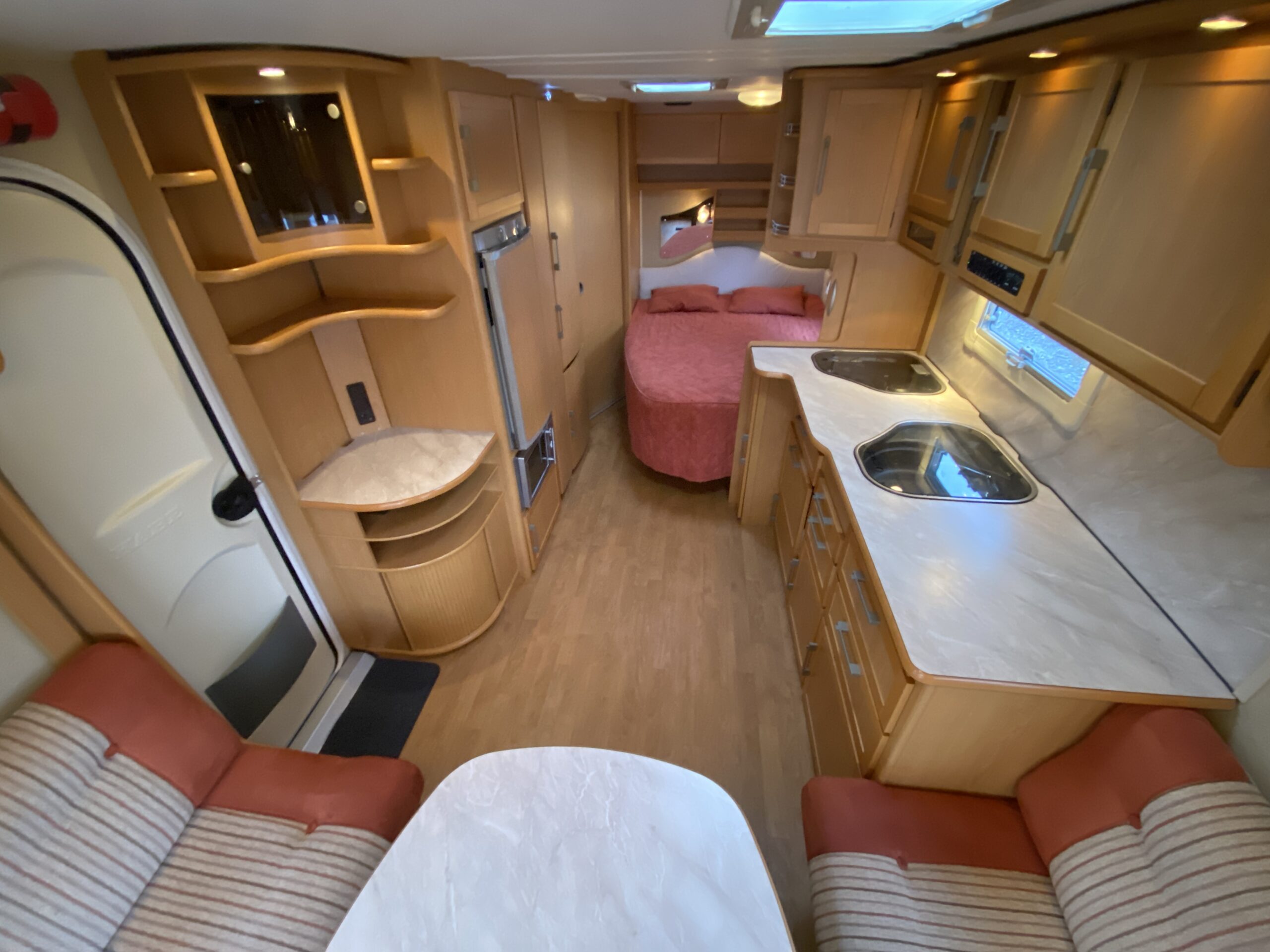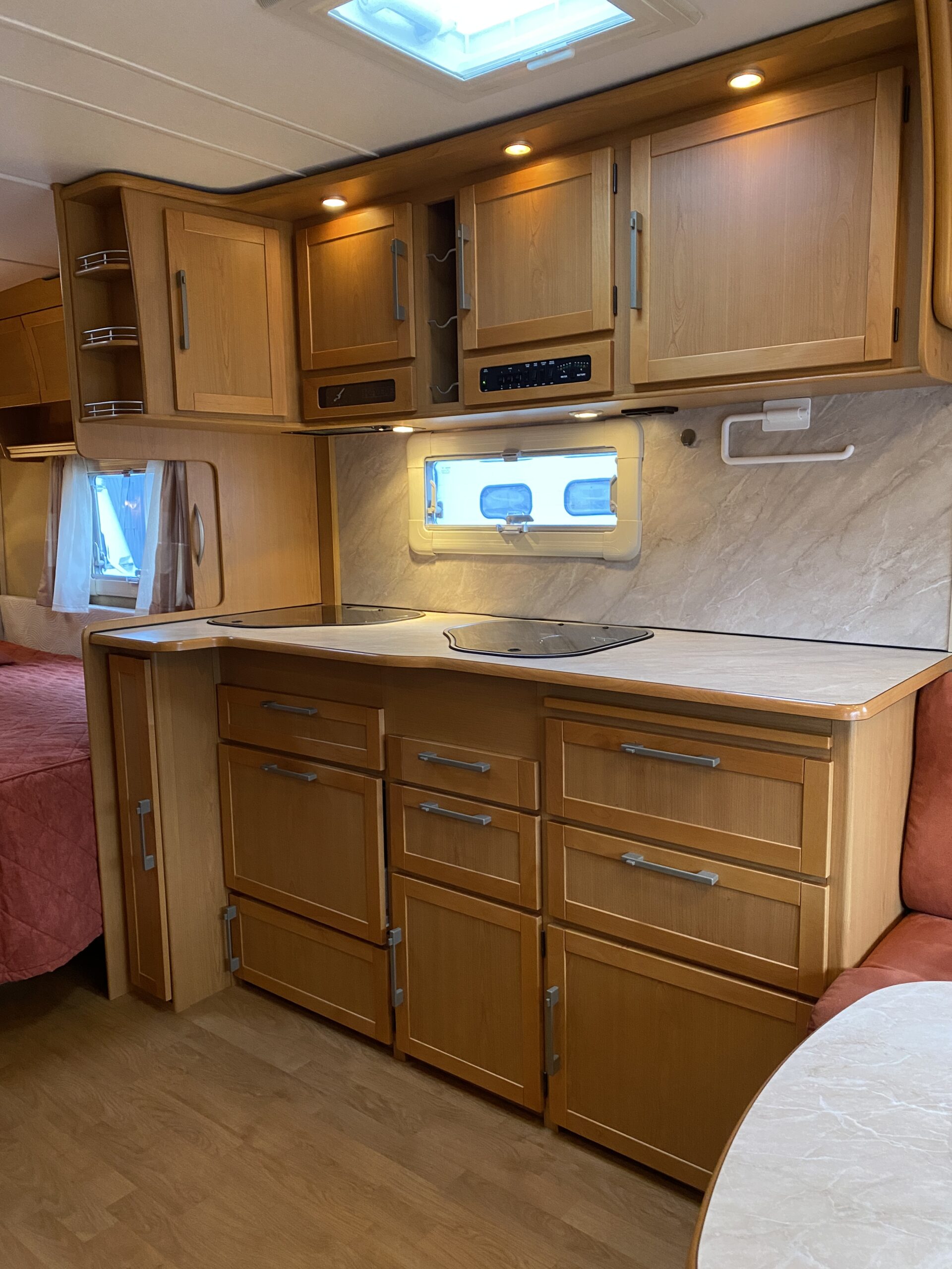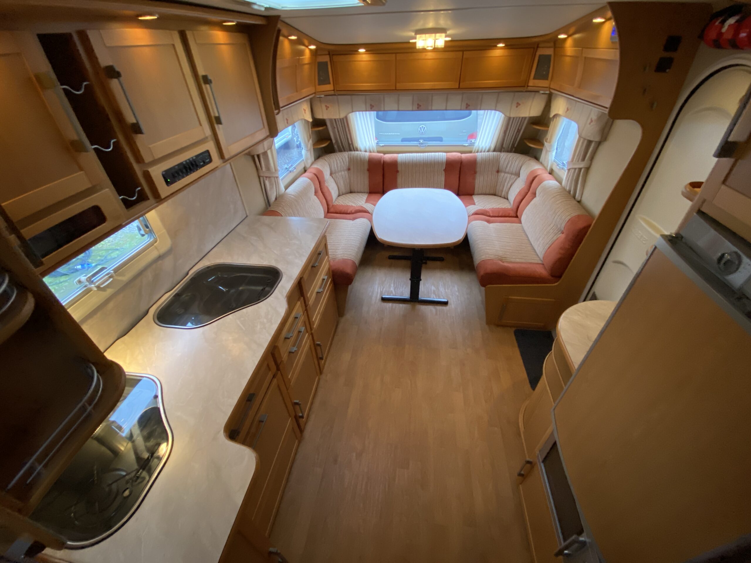 Alde vattenburen-centralvärme, elvärme, Alde-golvvärme, varmvatten, bide, spis, spisfläkt, kylskåp, mikro, fast vattentank, fast gråvattentank, kasettrullgardin, kasett-wc, tv-antenn, cd/radio, batteri/laddare, elmätare, tältservice, skibox, säkerhetskoppling, ventilationslucka, alu-fälgar, gasol-uttag,  gasflaska mm...