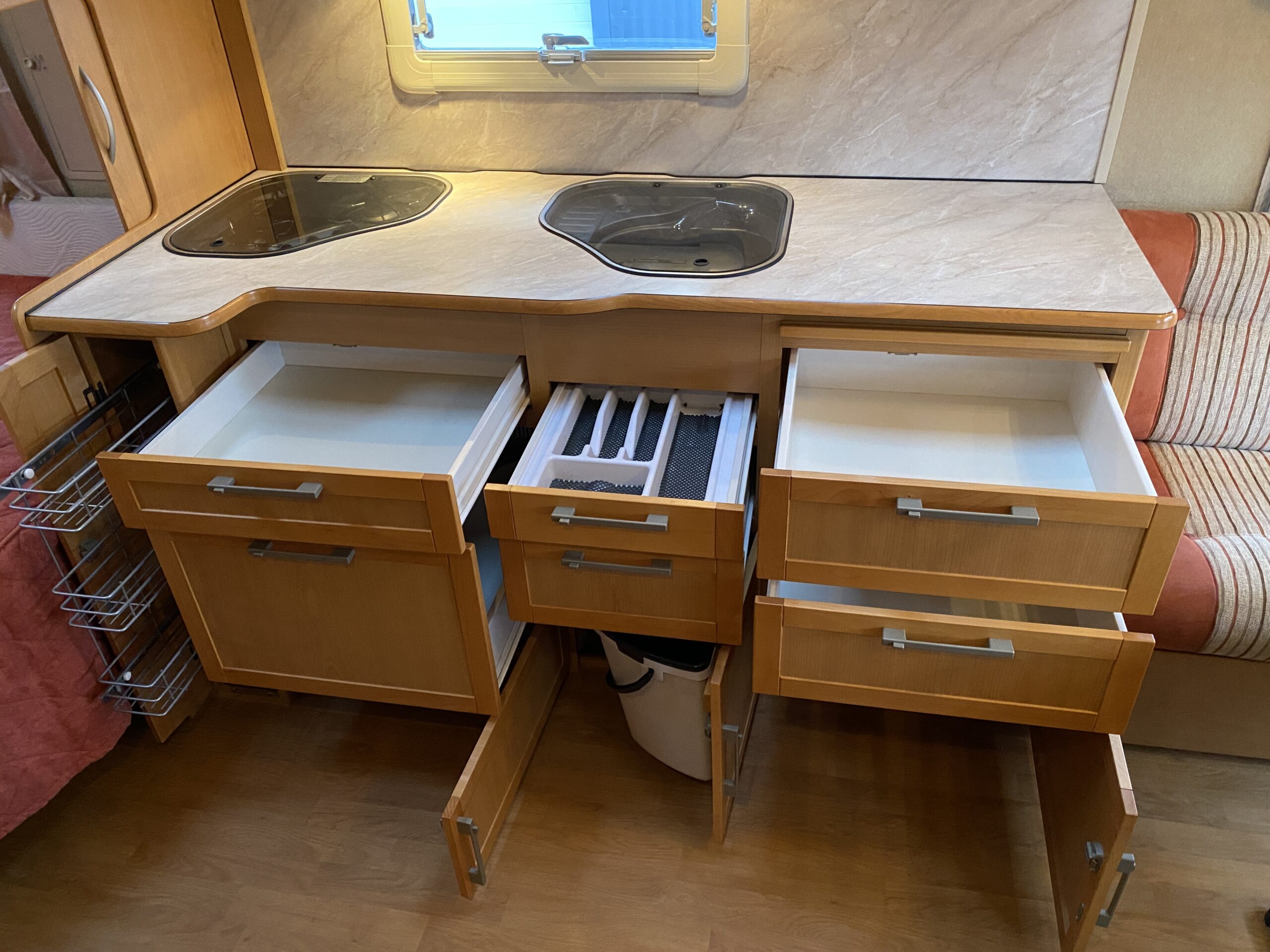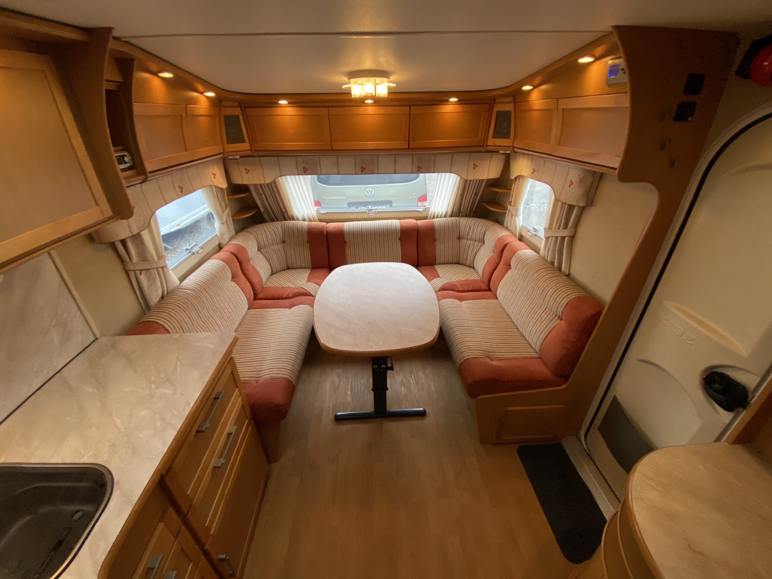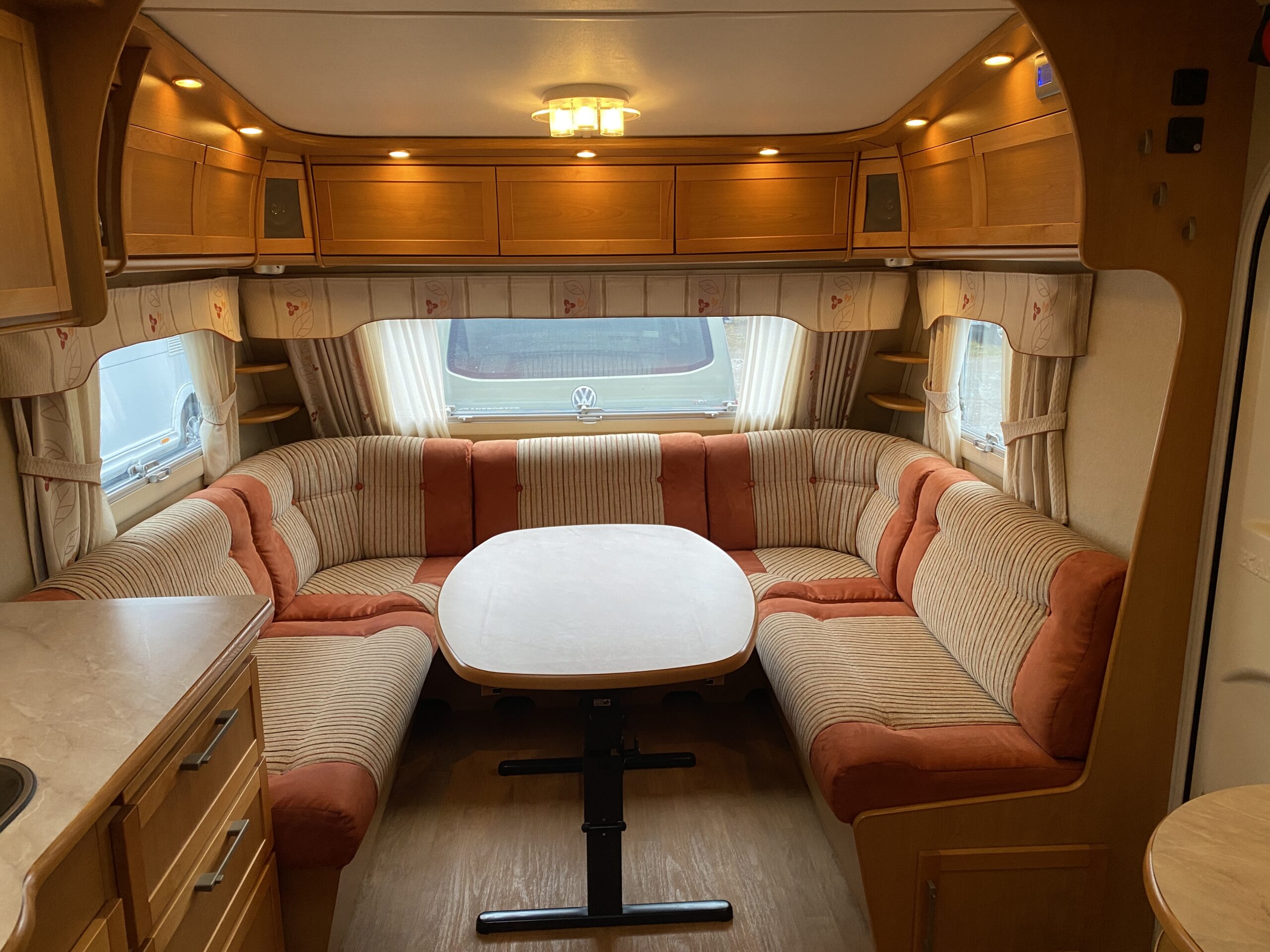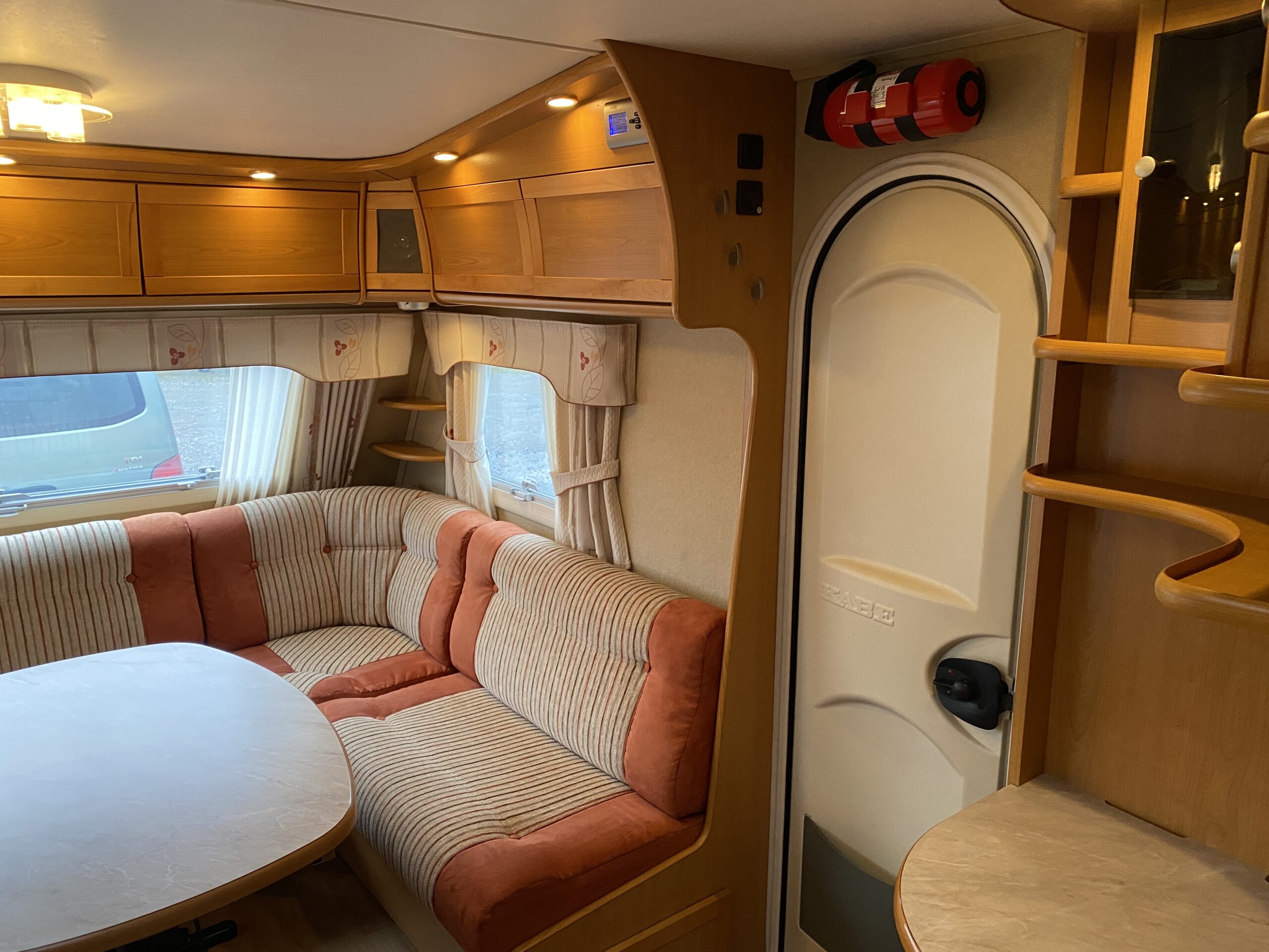 Alde vattenburen-centralvärme, elvärme, Alde-golvvärme, varmvatten, bide, spis, spisfläkt, kylskåp, mikro, fast vattentank, fast gråvattentank, kasettrullgardin, kasett-wc, tv-antenn, cd/radio, batteri/laddare, elmätare, tältservice, skibox, säkerhetskoppling, ventilationslucka, alu-fälgar, gasol-uttag,  gasflaska mm...