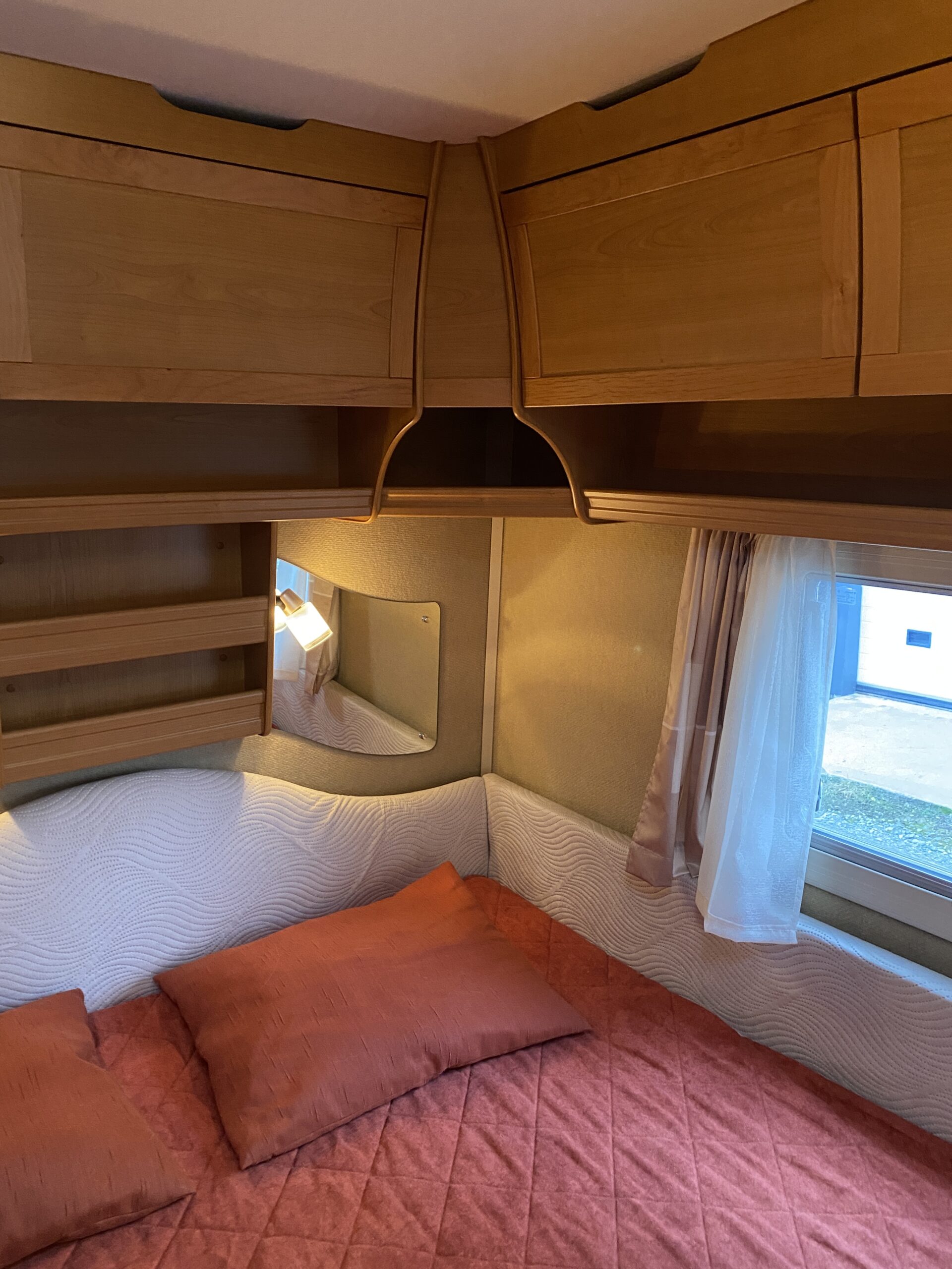 Alde-nestekeskuslämmitys, nestekiertoinen lattialämmitys, sähköpatruuna, lämmin vesi, bidesuihku, liesi, liesituuletin, jääkaappi, mikro, kiinteä raikasvesisäiliö, kiinteä harmaavesisäiliö, kasetti-wc, kasettiverhot, cd/radio, akku-/ laturivarustus, sähkömittari, telttapalvelu, tv-antenni, suksiluukku, kitkavetopää, tuuletusluukku, alu-vanteet, kaasun-ulosotto, kaasupullo... Pussimarkiisi ja kaksi seinää kaupanpäälle!!