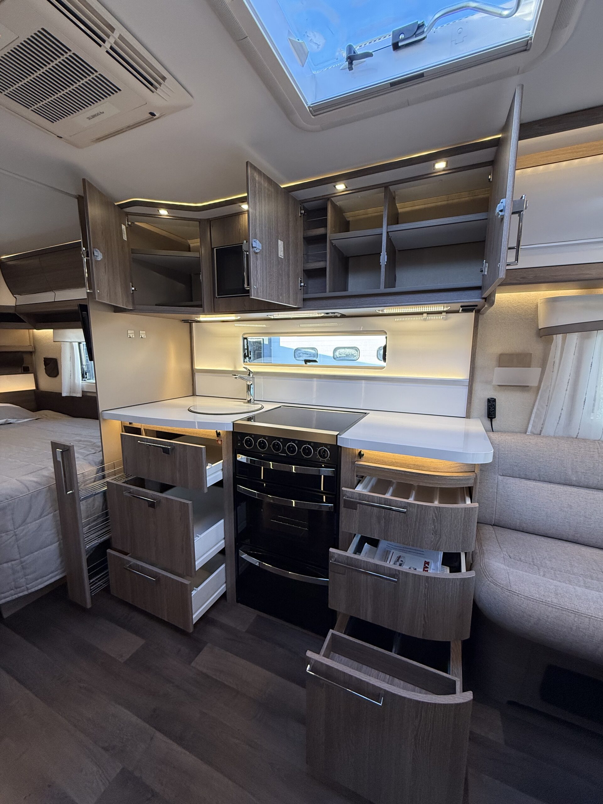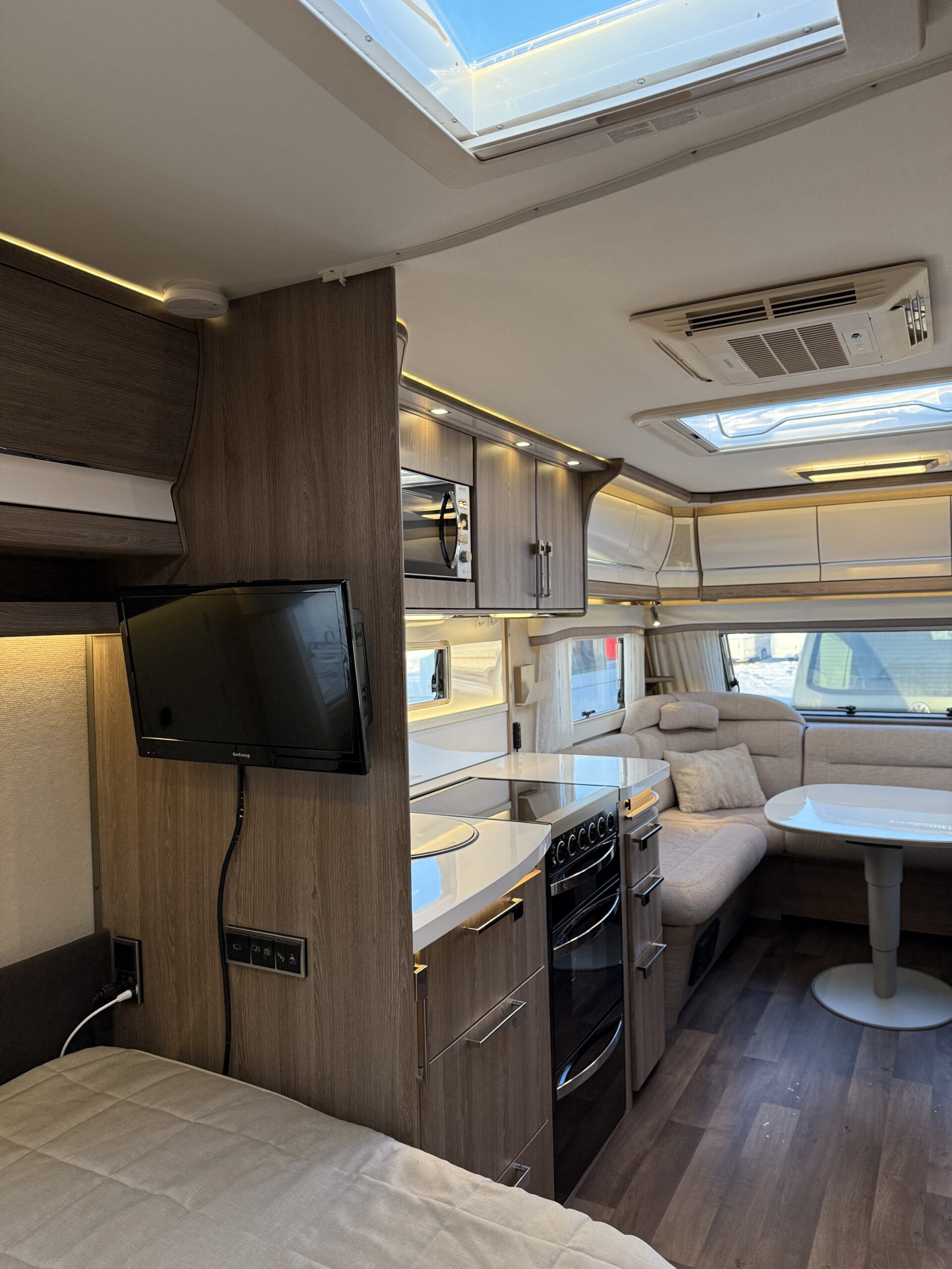 Dometic -ilmastointi kaukosäädöllä, Alde-nestekeskuslämmitys, nestekiertoinen lattialämmitys AGS II Pro, sähköpatruuna, lämmin vesi, bide-suihkuhana, ulkosuihku, liesi uunilla ja grillillä, mikroaaltouuni, liesituuletin, iso jääkaappi/pakastin, keskuspölynimuri, ATC elektroninen ajonvakautusjärjestelmä, kiinteä raikasvesisäiliö, kiinteä harmaavesisäiliö, kasetti-wc, kasettiverhot, multimediasoitin, akku-/laturivarustus, pyyhekuivain, telttapalvelu, kwh-mittari, tv-antenni, tv-teline, tavaraluukku, suksiluukku, kitkavetopää, tuuletusluukku, hyttysovi, aluvanteet, kaasun-ulosotto, kaasupullo...Dometic luftkonditionering med fjärrkontroll, Alde vattenburen-centralvärme, elvärme, Alde-golvvärme AGS II Pro, varmvatten, bide-duschkran, dusch uttag, spis/ugn/grill, mikrovågsugn, spisfläkt, stor kyl-/frysskåp, centraldammsugare, ATC-antisladdsystem, fast vattentank, fast gråvattentank, kasettrullgardin, kasett-wc, tv-antenn, tv-hållare, elmätare, multimediaspelare, batteri/laddare, handdukstork, tältservice, lastlucka, skibox, säkerhetskoppling, ventilationslucka, myggnätsdörr, alu-fälgar, gasol-uttag, gasflaska mm...