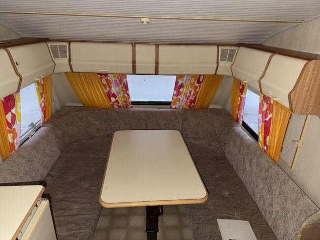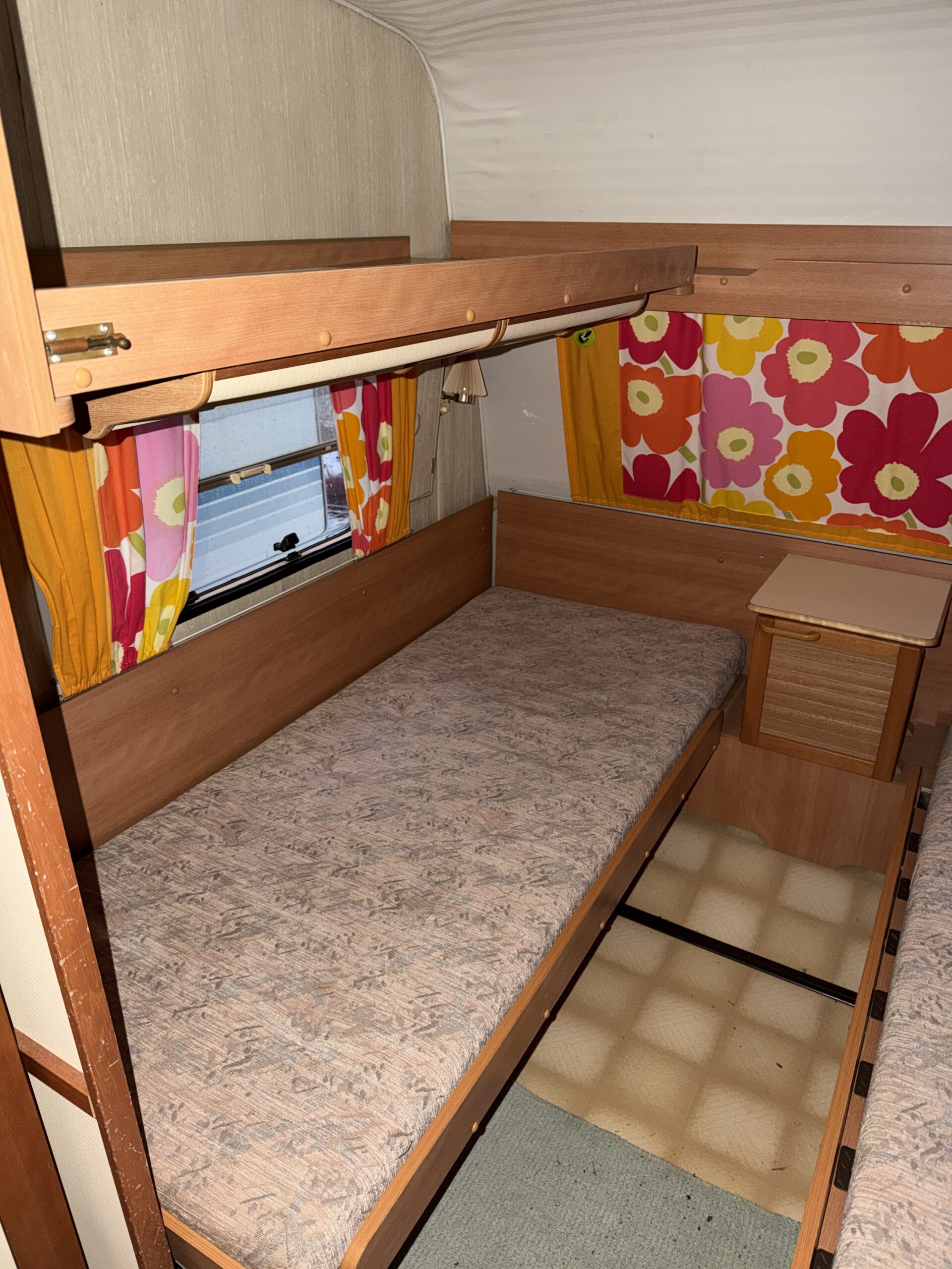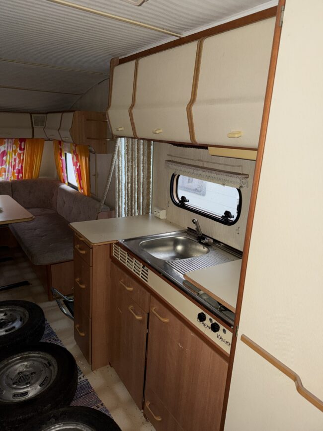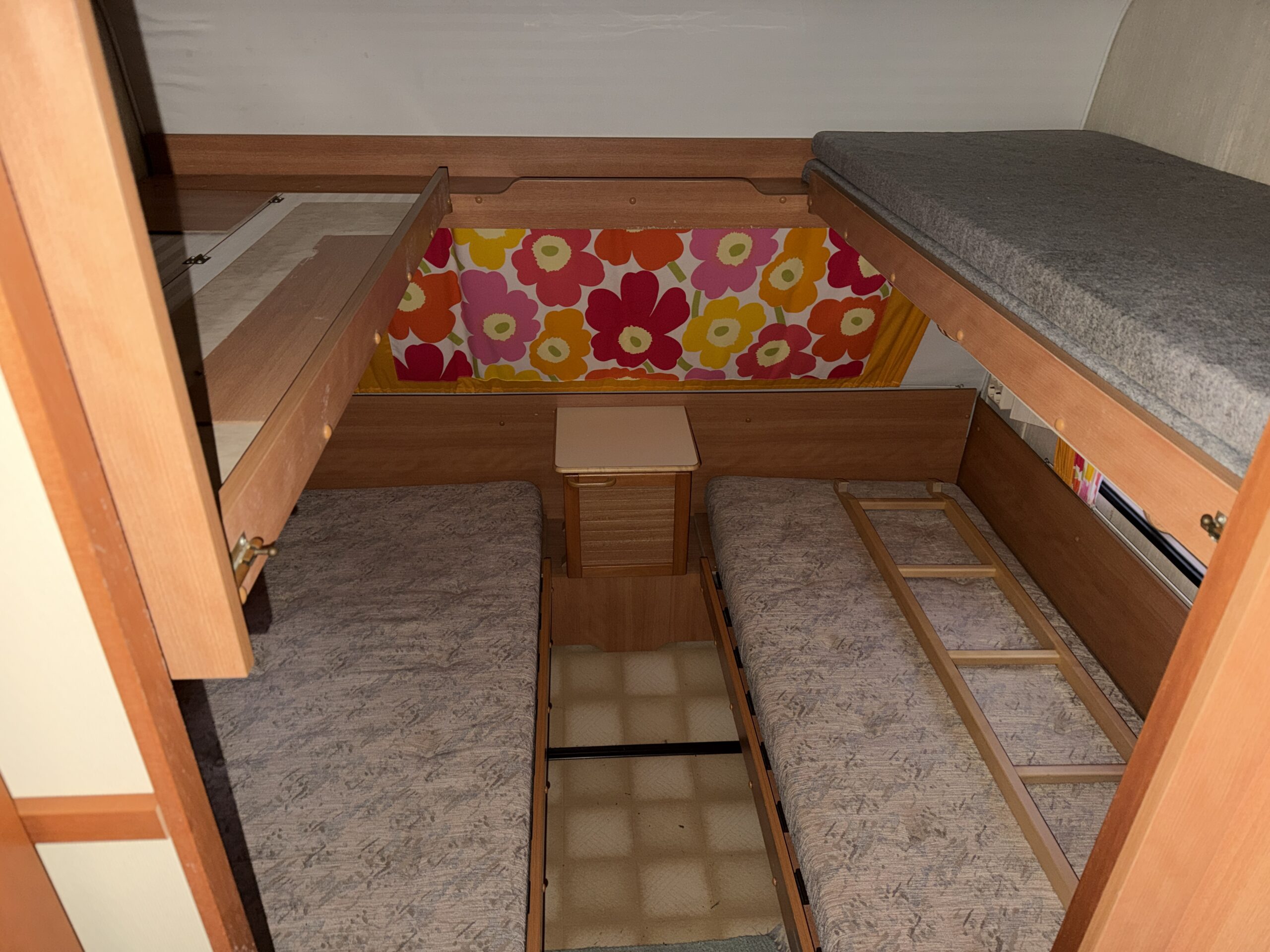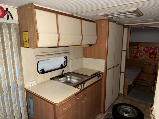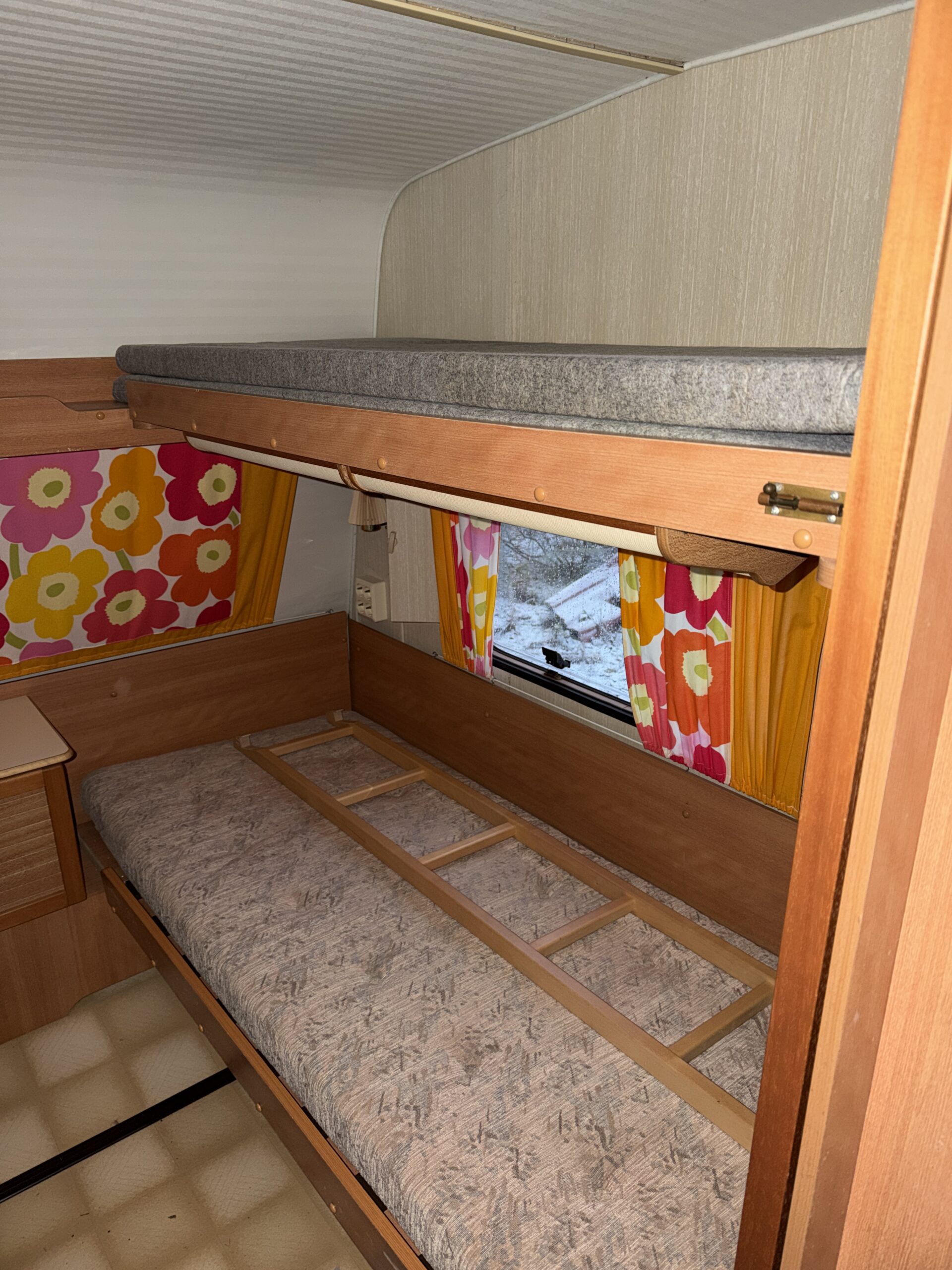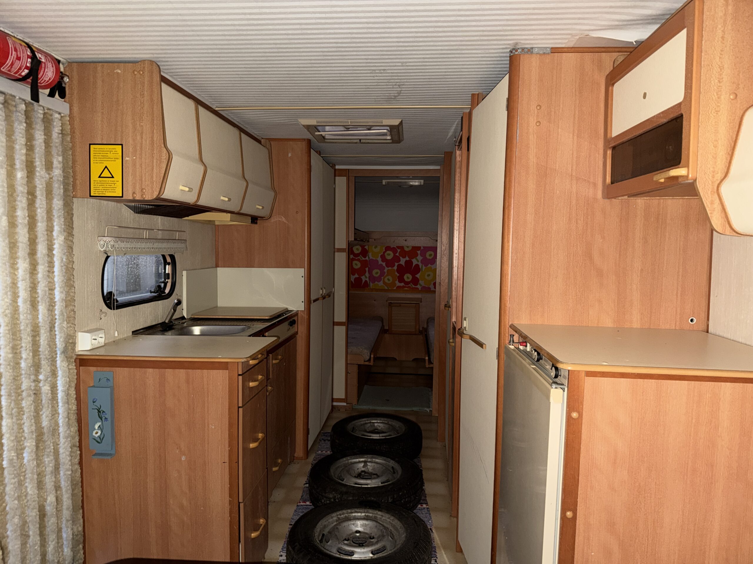 Erillisvuoteet, ylävuoteet x 2, Primus 2490 nestekeskuslämmitys, nestekiertoinen lattialämmitys, sähköpatruuna, lämmin vesi, jääkaappi/pakastinlokero, liesituuletin, astioitten kuivauskaappi, kasetti-wc, akku-/laturivarustus, sähkömittari, radio, suksiboksi takana, kahdet renkaat, huolto ja käyttöohjekirja, kaasupullo...