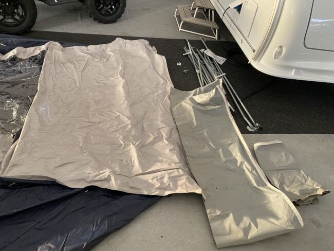 Siistikuntoinen talviteltta. Väri sininen / harmaa.