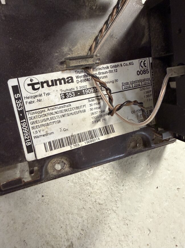 Truma S 3002 toimiva lämmitin kaasulla. Käytetty.